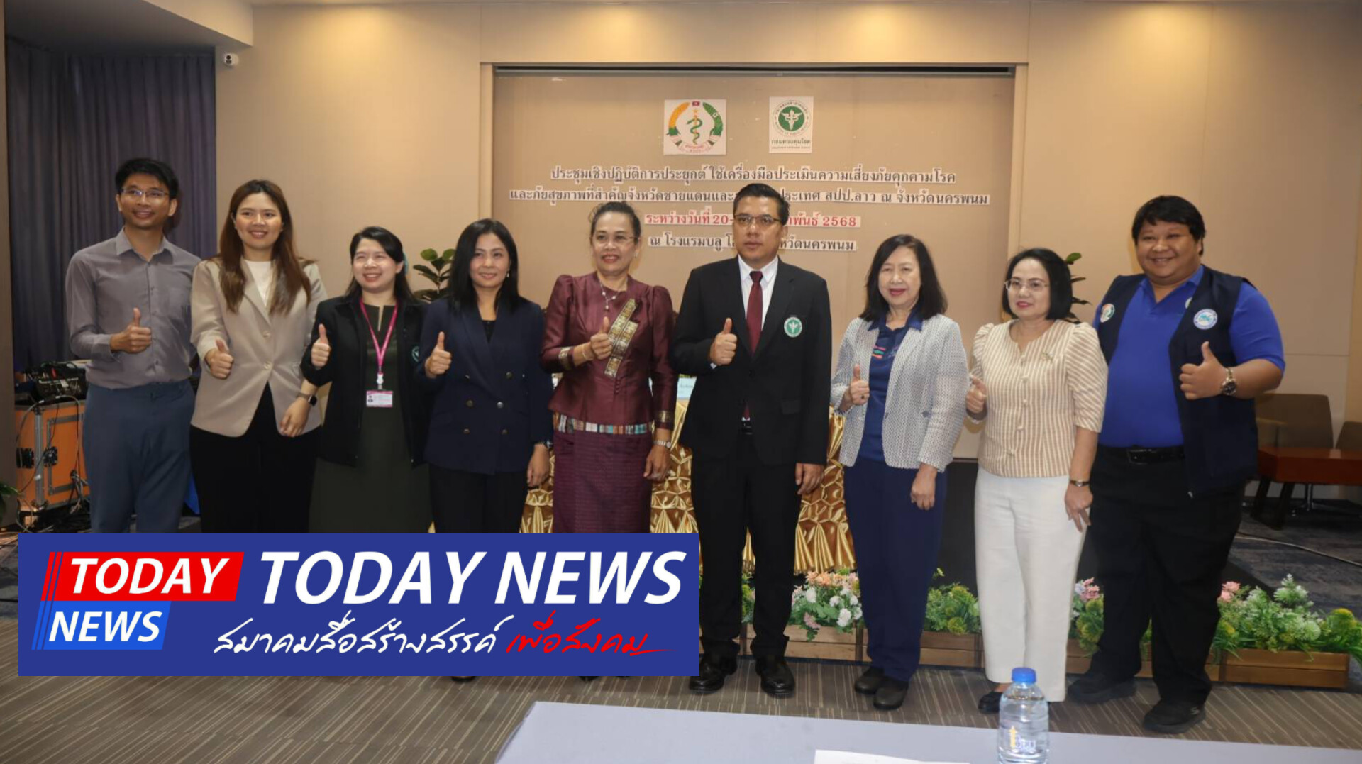 วันพฤหัสบดีที่ 20 กุมภาพันธ์ 2568 เวลา 10.30 น. นายแพทย์กิตติเชษฐ์ ธีรกุลพงษ์เวช รักษาการนายแพทย์เชี่ยวชาญ (ด้านเวชกรรมป้องกัน) รองนายแพทย์สาธารณสุขจังหวัดนครพนม ร่วมพิธีเปิดการประชุมเชิงปฏิบัติการประยุกต์ใช้เครื่องมือประเมินความเสี่ยงภัยคุกคาม โรคและภัยสุขภาพที่สำคัญจังหวัดชายแดนและระหว่างประเทศ สปป.ลาว โดยมี สพญ.ดร.เสาวพักตร์ ฮิ้นจ้อย รักษาการนายสัตวแพทย์ทรงคุณวุฒิ กรมควบคุมโรค ผู้แทนอธิบดีกรมควบคุมโรค ดร.รัศมี วงคำสาว รองอธิบดีกรมควบคุมโรคพยาธิติดต่อ สาธารณรัฐประชาธิปไตยประชาชนลาว (สปป.ลาว) คณะวิทยากรจากกรมควบคุมโรค และผู้เข้าร่วมประชุมจาก 5 จังหวัด 6 แขวง ที่มีพื้นที่ติดแนวชายแดน ประเทศไทย และสาธารณรัฐประชาธิปไตยประชาชนลาว (สปป.ลาว) ณ ห้องประชุม โรงแรมบลู โฮเทล จังหวัดนครพนม