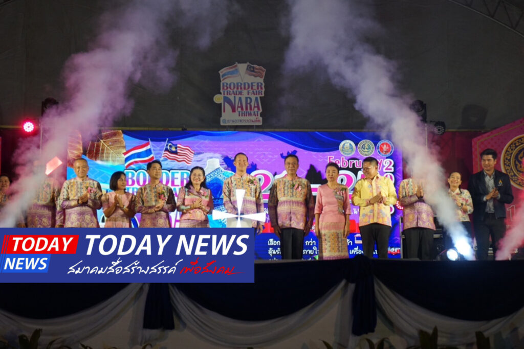 เมื่อเวลา 19.00 น. วันที่ 22 ก.พ.68 ที่ลานคนเดินสนามกีฬามหาราช อ.สุไหงโก-ลก จ.นราธิวาส ว่าที่ร้อยตรีตระกูล โทธรรม ผู้ว่าราชการ จ.นราธิวาส เป็นประธานพิธีเปิดงานเทศกาลอาหารจานเด็ดของดีที่สุไหงโก-ลก และงาน BORDER TRADE NARATHIWAT FAIR 2025 โดยมีนางนฤมล แก้วมุกดากุล พาณิชย์จังหวัดนราธิวาส นางสุชาดา พันธ์นรา นายกเทศมนตรีเมืองสุไหงโก-ลก นายกิตติ หวังธรรมมั่ง ประธานหอการค้าจังหวัดนราธิวาส และตัวแทนนายอำเภอสุไหงโก-ลก เจ้าหน้าที่ตำรวจ สภ.สุไหงโก-ลก ร่วมในพิธีเปิด