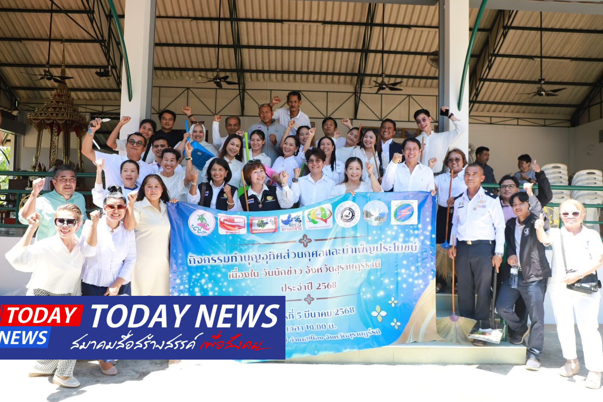 สื่อมวลชนจังหวัดสุราษฎร์ธานี จับมือกันครั้งแรกจัดกิจกรรม หิ้วปิ่นโต สวมเสื้อผ้าโทนขาว เข้าวัดทำบุญอุทิศส่วนกุศลและบำเพ็ญกุศลเนื่องใน “วันนักข่าว” ประจำปี 2568 มีสื่อมวลชนและเครือข่าย ร่วมกิจกรรม กว่า 100 คน