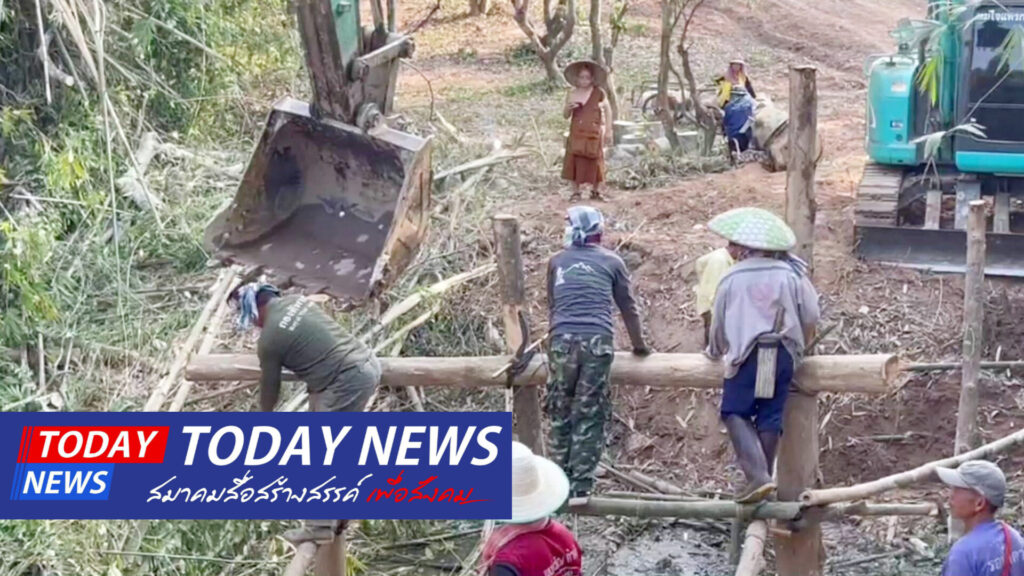 พะเยา สะพานไม้ไผ่มิตรภาพ พระ-โยมร่วมกันสร้างวันเดียวเสร็จ