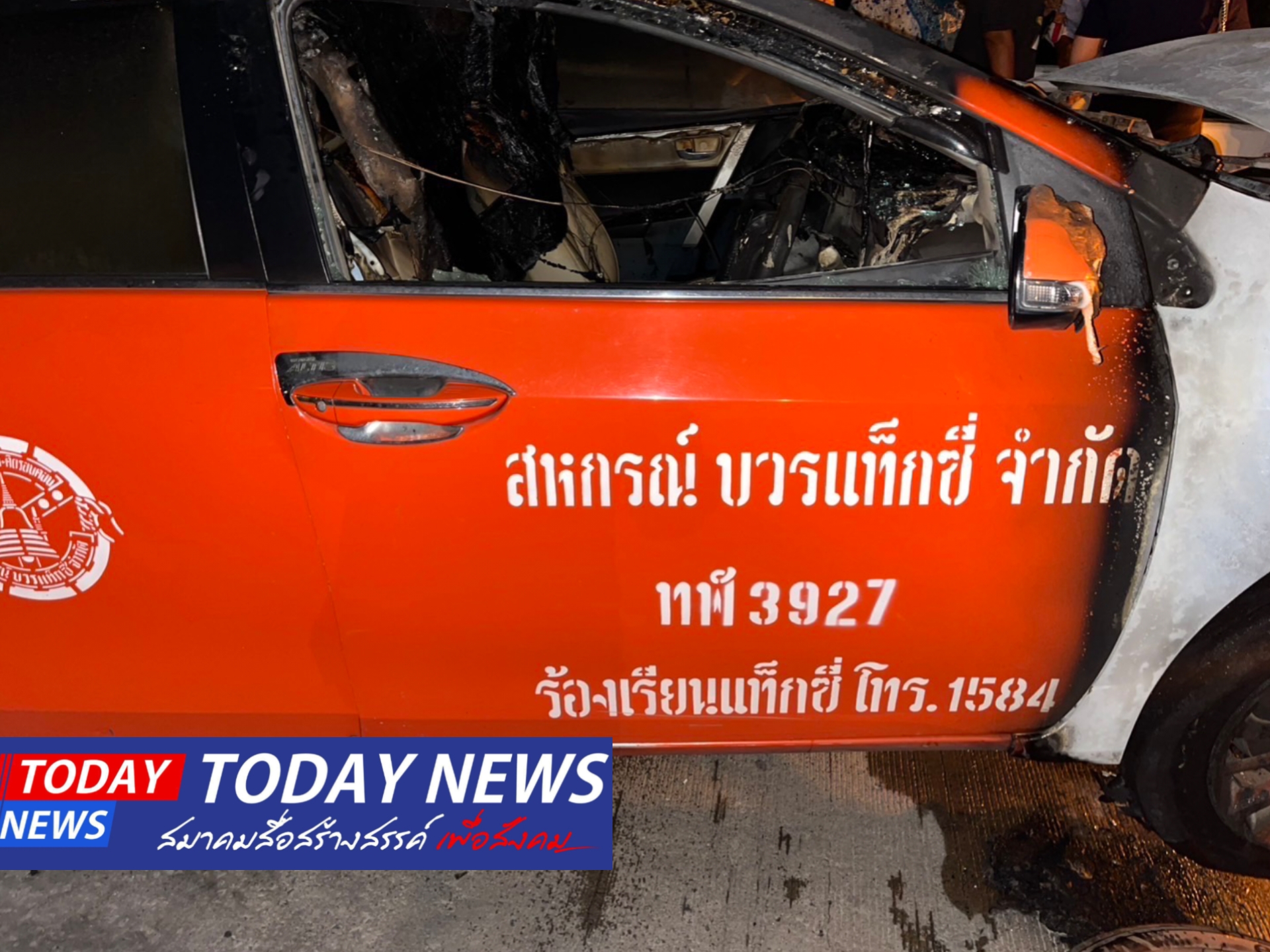 ที่เกิดเหตุเป็นถนน 3 เลน บริเวณช่องทางคู่ขนาน เลนซ้ายสุด พบรถแท็กซี่ สีส้ม หมายเลขทะเบียน ทฬ 3927 กทม. ถูกเพลิงไหม้บริเวณห้องเครื่องยนต์ด้านหน้า ก่อนจะลุกลามไปยังห้องโดยสารพังเสียหาย เจ้าหน้าที่จึงช่วยกันใช้น้ำดับเพลิง ใช้เวลากว่า 15 นาที จึงสามารถควบคุมเพลิงไว้ได้