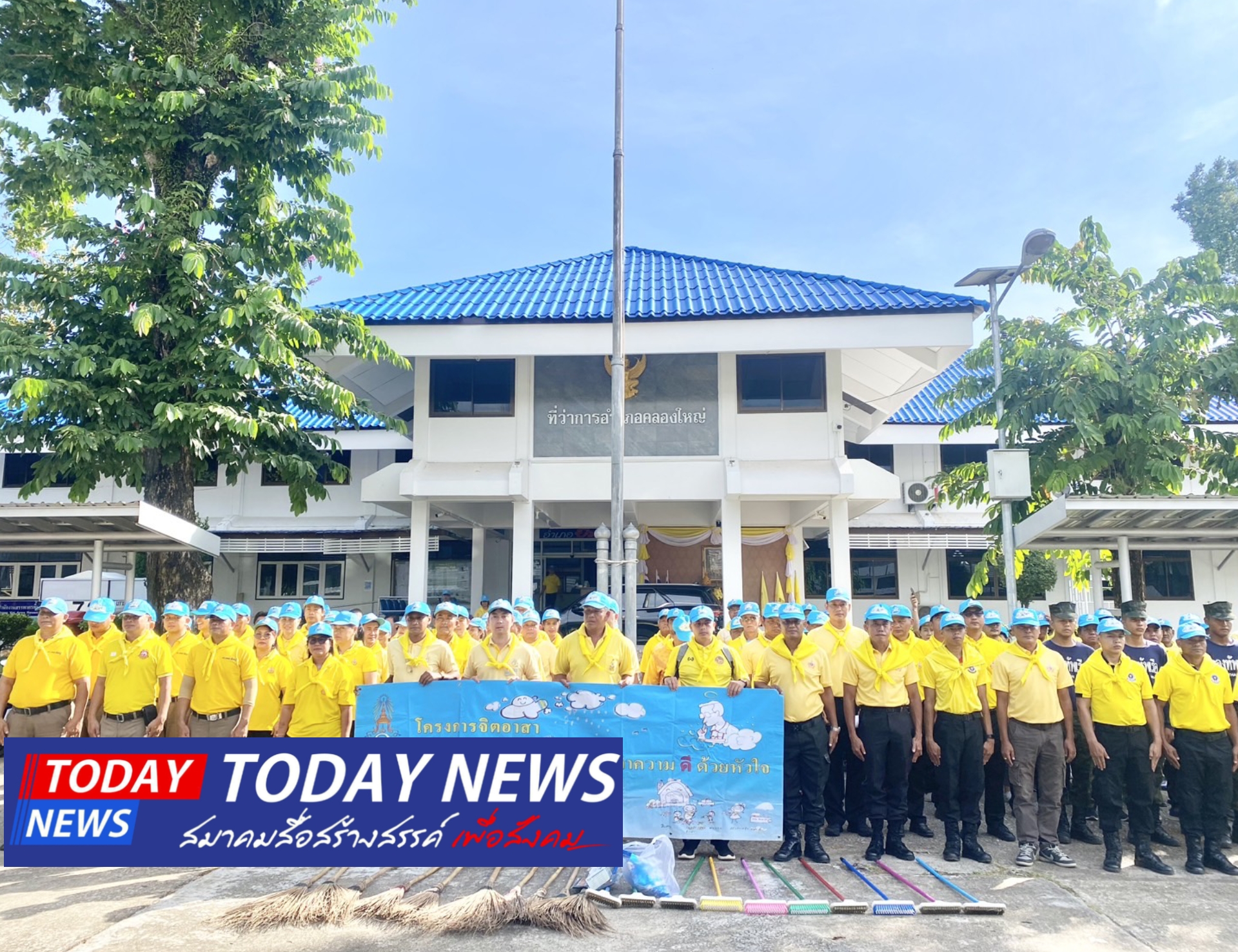 .เมื่อช่วงบ่ายที่ผ่านมา วันที่ 7 พฤษภาคม 2568 นายเชิดศักดิ์ ชุ่มนาเสียว นายอําเภอคลองใหญ่ ผู้อำนวยการศูนย์อำนวยการจิตอาสาพระราชทานอําเภอคลองใหญ่ เป็นประธานจัดกิจกรรมจิตอาสาพัฒนา เนื่องในวันสำคัญของชาติไทย วันฉัตรมงคล โดยศูนย์อำนวยการจิตอาสาพระราชทานอําเภอคลองใหญ่ ร่วมกับองค์กรปกครองส่วนท้องทิ่น เทศบาล อบต.ทั้ง 4 แห่งโดยมีจิตอาสา 904 อําเภอคลองใหญ่ และ จิตอาสา ข้าราชการ กํานัน ผู้ใหญ่บ้าน ทหาร ตํารวจ ในพื้นที่ เข้าร่วมกิจกรรมพัฒนาปรับปรุงภูมิทัศน์ความสะอาด บริเวณโดยรอบๆที่ว่าการอําเภอคลองใหญ่แห่งนี้
