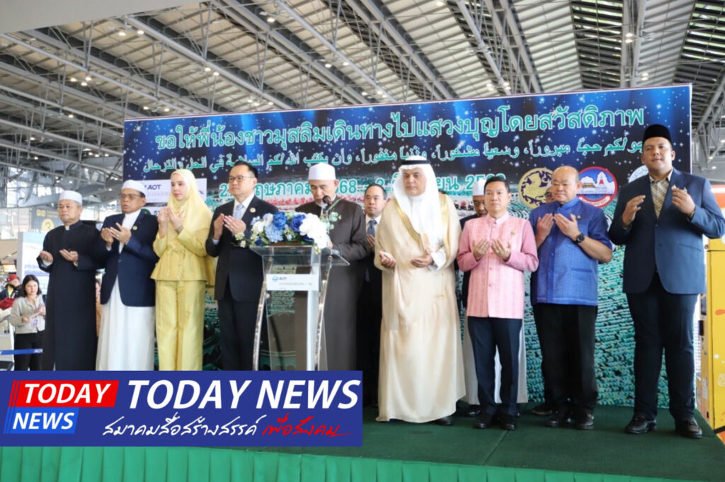 ท่าอากาศยานสุวรรณภูมิ ร่วมกับ กรมการปกครองและจังหวัดสมุทรปราการ จัดพิธีส่งและอำนวยพรผู้เดินทางไปประกอบพิธีฮัจย์ ณ ราชอาณาจักรซาอุดีอาระเบีย ประจำปี 2568