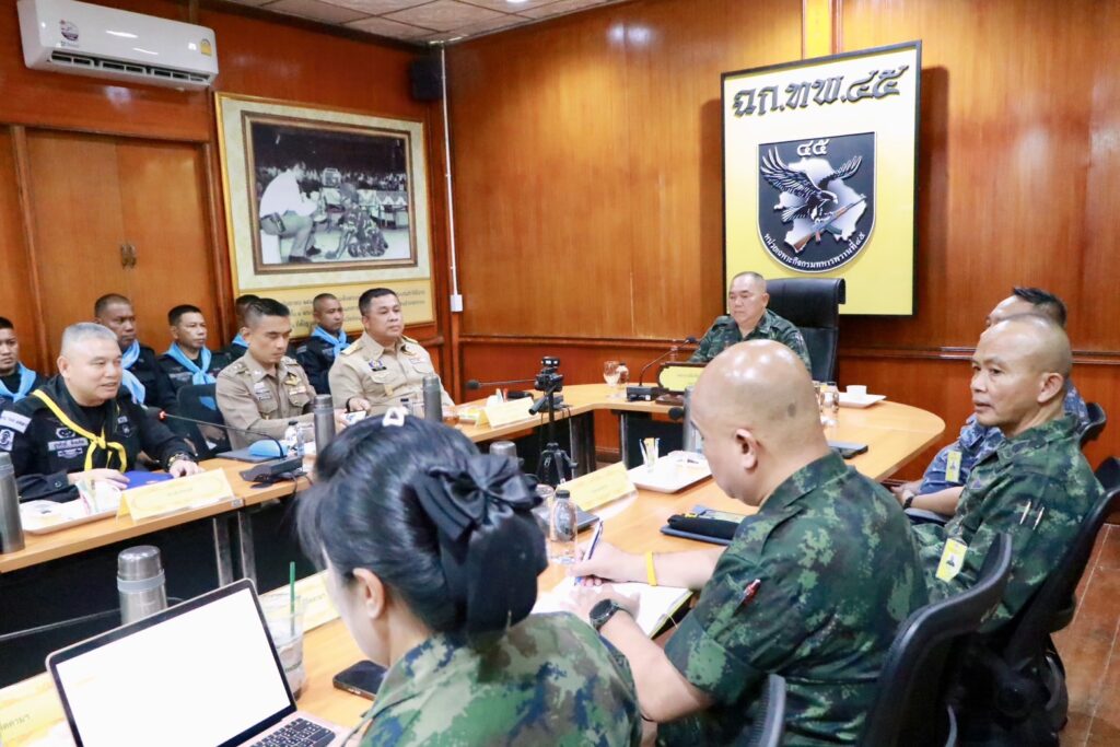 วันนี้ (10 มิถุนายน 2568) เวลา 13.30 น. ที่ หน่วยเฉพาะกิจกรมทหารพรานที่ 45 อำเภอระแงะ จังหวัดนราธิวาส พลโท ไพศาล หนูสังข์ แม่ทัพภาคที่ 4 / ผู้อำนวยการรักษาความมั่นคงภายในภาค 4 มอบหมายให้ พลตรี เฉลิมชัย สุทธินวล ผู้อำนวยการศูนย์สันติวิธี กองอำนวยการรักษาความมั่นคงภายในภาค 4 ส่วนหน้า ลงพื้นที่ เพื่อสร้างความเข้าใจและขับเคลื่อนงานตามแนวทางนโยบาย 5 งานสำคัญของผู้อำนวยการรักษาความมั่นคงภายในภาค 4 รวมไปถึงแนวทางการปฏิบัติงานมิติการเมือง และแนะนำคู่มือชุดปฏิบัติการกิจการพลเรือนให้กับหัวหน้าส่วนราชการ ส่วนราชการ 3 ฝ่าย, ชุดปฏิบัติการฝ่ายกิจการพลเรือนและชุดปฏิบัติการสริมสร้างความเข้าใจ เพื่อนำไปประยุกต์ปรับใช้ให้เข้ากับสถานการณ์ในปัจจุบัน โดยมี นายวิมุตติ อำนักมณี นายอำเภอระแงะ จังหวัดนราธิวาส, พันตำรวจเอก ศุภชัช (ยีหวังกอง) ณ พัทลุง ผู้กำกับการสถานีตำรวจภูธรระแงะ พร้อมด้วยหัวหน้าส่วนราชการ ตลอดจนส่วนที่เกี่ยวข้องร่วมให้การต้อนรับ
