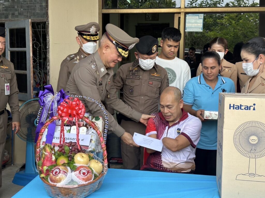 โดยในการนี้ พล.ต.อ.ธนายุตม์ วุฒิจรัสธำรงค์ ที่ปรึกษาพิเศษ ตร. และคุณนภัสนันท์ วุฒิจรัสธำรงค์ อุปนายกสมาคมแม่บ้านตำรวจ ได้เป็นตัวแทน สมาคมแม่บ้านตำรวจ มอบเงินจำนวน 5,000 บาท พร้อมทั้งได้มอบเงินส่วนตัว จำนวน 5,000 บาทและชมรมแม่บ้านตำรวจภูธรภาค 8 มอบเงินช่วยเหลือ จำนวน 5,000 บาท