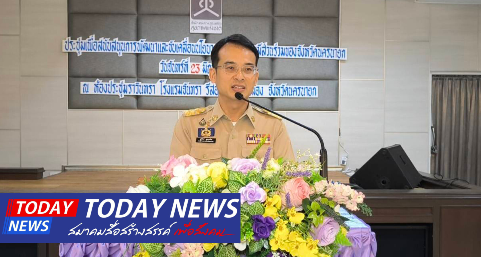 เมื่อเวลา 09.00 น.ของวันที่ 23 มิถุนายน 2568 ที่ห้องประชุมราวิธา โรงแรมจันทร์รีสอร์ท อำเภอเมือง จังหวัดนครนายก นายภูมิวัชร์ อุดมทรัพย์ รองผู้ว่าราชการจังหวัดนครนายก กล่าวต้อนรับผู้เข้าร่วมประชุมและบรรยายพิเศษ โดบมีนายแพทย์อภิชาติ รอดสม รองเลขาธิการคณะกรรมการสุขภาพแห่งชาติ เป็นประธานในพิธีเปิดการประชุมเพื่อสนุบสนุนการพัฒนาและการขับเคลื่อนนโยบายสาธารณะแบบมีส่วนร่วมของจังหวัดนครนายก โดยมีหน่วยงานส่วนราชการ องค์กรเอกชน ผู้นำชุมชน และประชาชน เข้าร่วมการประชุมในครั้งนี้เป็นจำนวนมาก โดยมีนายแพทย์อภิชาติ รอดสม รองเลขาธิการฯคณะกรรมการสุขภาพแห่งชาติ ได้บรรยายพิเศษสถานการณ์จังหวัดนครนายก ประเด็นเป้าหมายสำคัญที่ต้องร่วมกันขับเคลื่อน พร้อมมีผู้มาบรรยายพิเศษให้ความรู้ความเข้าใจกับผู้ที่เข้าประชุมในครั้งนี้อีกหลายท่าน