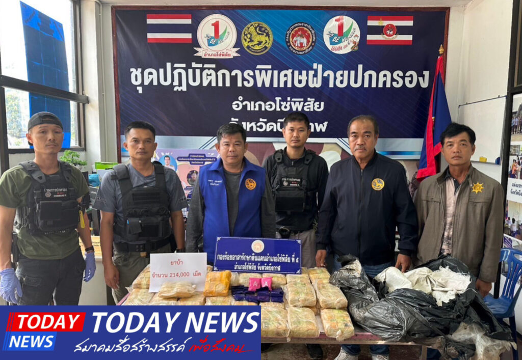 เมื่อวันที่ 29 มิ.ย.เวลาประมาณ 09.30 น. ณ ที่ว่าการอำเภอโซ่พิสัย จังหวัดบึงกาฬ นายวงศกร มองเพชร ปลัดอำเภอหัวหน้าฝ่ายความมั่นคง อำเภอโซ่พิสัย พร้อมคณะเจ้าหน้าที่ ได้ร่วมกันแถลงข่าวการตรวจยึดยาเสพติดให้โทษประเภท 1 (ยาบ้า) จำนวนมาก โดยมียาบ้าชนิดสีแดง 214,000 เม็ด และชนิดสีเขียว 4,040 เม็ด รวมทั้งสิ้น 218,040 เม็ด