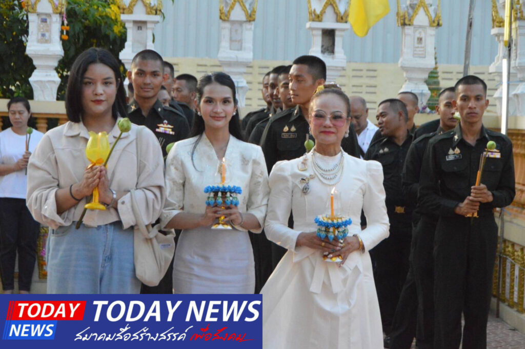 จากนั้น ในเวลา 18.00 น. ผอ.ฟ้า พรทิพา นำพุทธศาสนิกชน ร่วมพิธีเวียนเทียนรอบพระอุโบสถ จำนวน 3 รอบ เนื่องในวันอาสาฬหบูชาซึ่งเป็นวันสำคัญทางพระพุทธศาสนา วันอาสาฬหบูชา เป็นวันสำคัญทางพระพุทธศาสนา เนื่องจากเป็นวันที่พระพุทธเจ้าแสดงปฐมเทศนาเป็นครั้งแรกในโลก ชื่อว่า ธัมมจักกัปปวัตตนสูตร และเป็นวันที่บังเกิดพระรัตนตรัยครบทั้ง 3 คือพระพุทธ พระธรรม พระสงฆ์ นับเป็นวาระอันเป็นมงคลดิถียิ่ง ซึ่งในปีนี้ตรงกับวันพฤหัสบดีที่ 10 กรกฎาคม พ.ศ. 2568