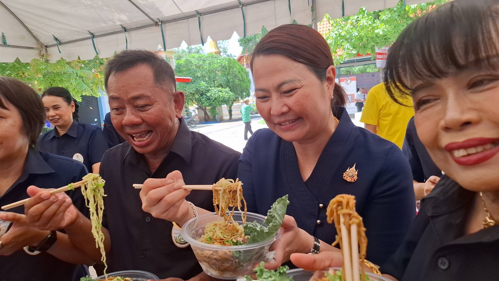 ทั้งนี้ศูนย์ส่งเสริมการเรียนรู้ระดับตำบลไม้ดัดได้ออกงานคลินิกเกษตรเคลื่อนที่ฯ ณ วัดบ้านจ่า ตำบลบ้านจ่า อำเภอบางระจัน เพื่อส่งเสริมเรียนรู้การทำบะหมี่หยกด้วยตนเองได้ มี นายสุเมธ ธีรนิติ ผู้ว่าราชการจังหวัดสิงห์บุรี รองผู้ว่าราชการจังหวัดสิงห์บุรี และหัวหน้าส่วนราชการ สนใจชิมและส่งเสริมช่องทางการตลาดส่งออกนอกประเทศเพิ่มช่องทางการตลาดสร้างรายได้ให้ชุมชน สนใจศึกษาเรียนรู้หรือซื้อสินค้าโทร.0649462697