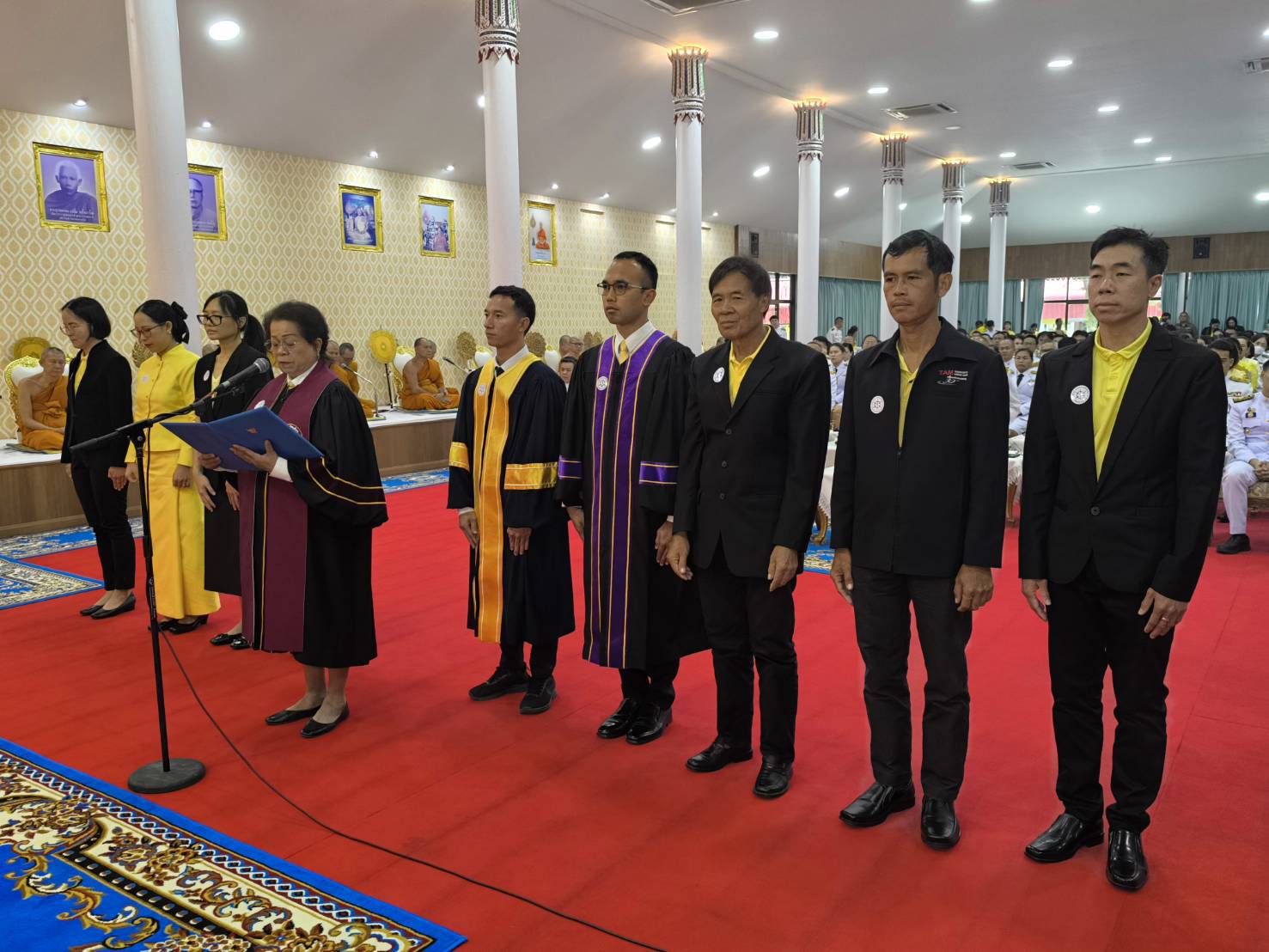 พระสงฆ์ 10 รูปเจริญพระพุทธมนต์ ประธานสงฆ์ให้ศิล ประธานในพิธีและผู้ร่วมพิธีรับศิล เจ้าหน้าที่กล่าวคำถวายผ้าไตร ภัตาหาร จตุปัจจัยไทยธรรม จากนั้นผู้ว่าราชการจังหวัดนครนายก ถวายผ้าไตรจีวรแด่พระสงฆ์ จำนวน 10 รูป ข้าราชการชั้นผู้ใหญ่ถวายภัตตาหารปิ่นโตแด่พระสงฆ์ พระสงฆ์อนุโมทนา (ถวายอดิเรก) ผู้ว่าราชการจังหวัดนครนายก กรวดน้ำรับพร ต่อจากนั้นเป็นการประกอบพิธีศาสนาอิสลาม และประกอบพิธีศาสนาคริสต์
