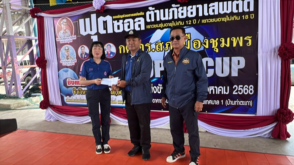 พันตำรวจเอก ปัญญา ท้วมศรี ผู้กำกับการสถานีตำรวจภูธรเมือง ชุมพร ได้กำหนดจัดการแข่งขันกีฬาฟุตซอล กต.ตร.สภ.เมืองชุมพร Supper cup ชิงถ้วย ประธาน กต.ตร.สภ.เมืองชุมพร และ ผู้บังคับการตำรวจภูธรจังหวัดชุมพร โดยกำหนดจัดการแข่งขัน ในวันเสาร์ที่ ๒ และ วันอาทิตย์ที่ ๓ สิงหาคม ๒๕๖๘ โดยมีทีมเข้า ร่วมการแข่งขันในครั้งนี้จำนวน ๓๕ ทีม โดยมีวัตถุประสงค์ ดังนี้ ๑. เพื่อส่งเสริมให้เยาวชนในพี้นที่ใกล้เคียงให้มีสุขภาพแข็งแรงสมบูรณ์ รู้จักใช้ เวลาว่างให้เกิดประโยชน์ ห่างไกลจากอบายมุข และยาเสพติด ๒. เพื่อส่งเสริมให้เยาวชนตระหนักถึงการออกกำลังกายโดยใช้ กีฬาเป็นสื่อในการ พัฒนาร่างกายและจิตใจ ๓. เพื่อส่งเสริมให้เยาวชนได้มีความสามัคคี รู้แพ้ รู้ชนะ รู้อภัย มีน้ำใจนักกีฬา เกิดความสามัคคี และความสัมพันธ์อันดีภายในหมู่คณะ ๔. เพื่อให้เด็กและเยาวชนห่างไกลยาเสพติด ตามนโยบายของรัฐบาล ” No Drugs No Dealers ” รวมพลังยับยั้งปัญหายาเสพติด ผนึกกำลังชุมชนปลอดยาเสพติด