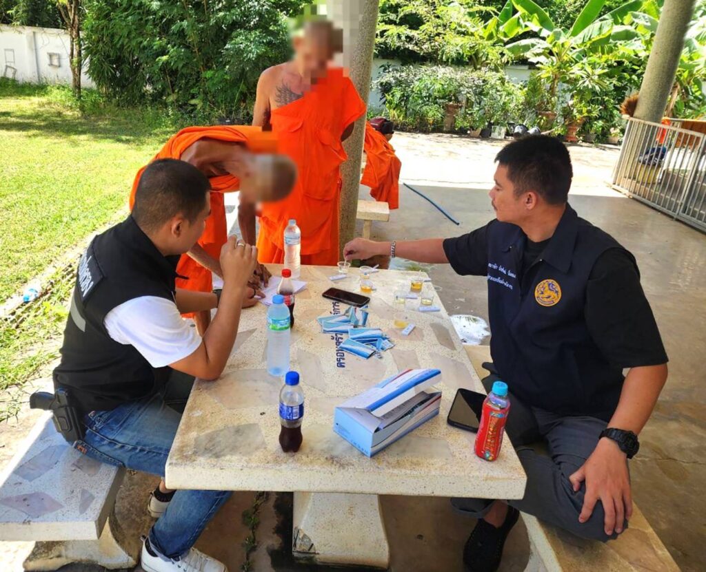 ฝ่ายปกครอง-ตำรวจสภ.ตะพานหินลุยตรวจหาสารเสพติด2วัดเจอพระฉี่สีม่วง5รูปจับสึกทันที