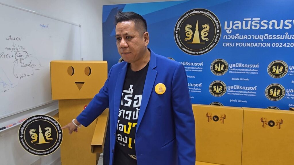 วันที่ 17 ส.ค.68 ที่สำนักงานมูลนิธิรณรงค์ทวงคืนความยุติธรรมในสังคม ถนนแจ้งวัฒนะ ตำบลบางตลาด อำเภอปากเกร็ดจังหวัดนนทบุรี ผู้สื่อข่าวได้มีโอกาสเข้าเยี่ยมชมเฟอร์นิเจอร์ชุดใหม่ทั้งหมดที่ทำจากกล่องกระดาษ ตั้งแต่โต๊ะกลางตัวใหญ่ที่ใช้ในการแถลงข่าวสำหรับสื่อมวลชน อีกทั้งเก้าอี้นั่งจำนวนหลายสิบตัว รวมทั้งตัวมัสคอดร์ตั้งไว้โชว์ในสำนักงาน และที่สำคัญยังมีชุดวางไมค์ไว้ให้ผู้สื่อข่าวจากหลายสำนักไว้ตั้งลองไมค์ได้จำนวนนับสิบไมค์เพื่ออำนวยความสะดวกให้สื่อมวลชนหลายสำนัก โดยทั้งหมดทำจากวัสดุที่เป็นกระดาษทั้งสิ้น