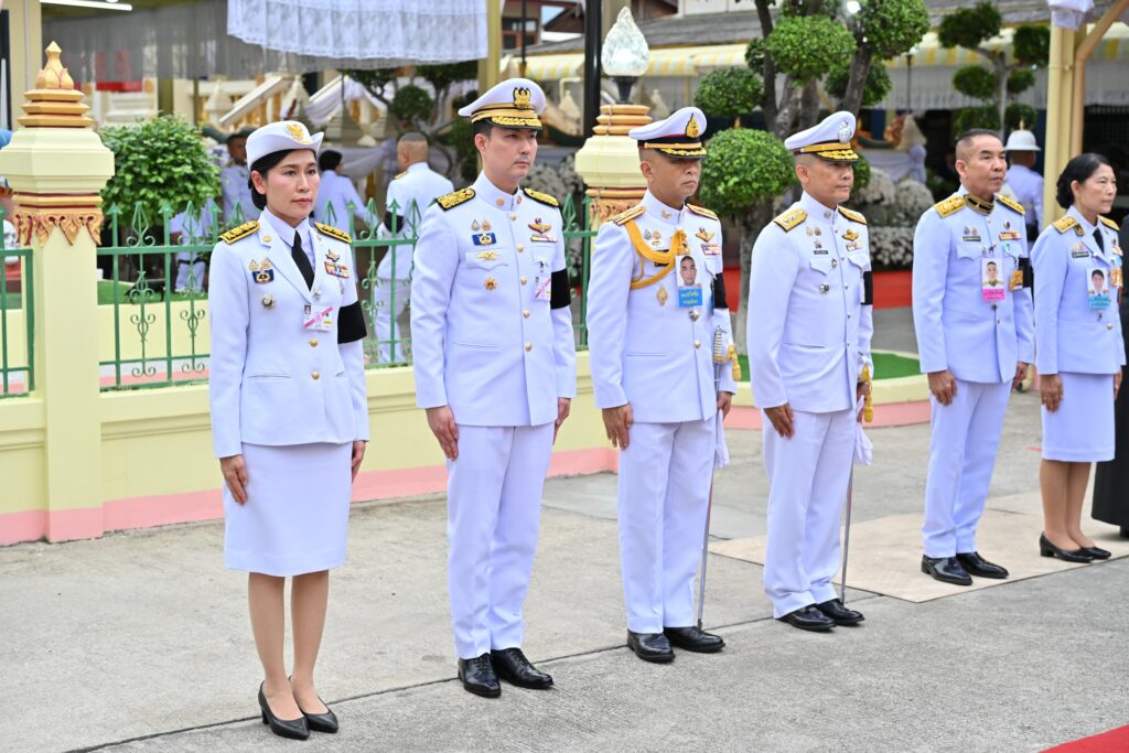 ในการนี้ ทรงทอดผ้าไตร 10 ไตร พระสงฆ์ 10 รูป บังสุกุล จากนั้นทรงหยิบกระทงข้าวตอกดอกไม้วางที่บนพาน ทรงจุดธูปเทียนดอกไม้จันทน์ พระราชทานเพลิง โดยมีพระเถรานุเถระ รองผู้ว่าราชการจังหวัดนครปฐม หัวหน้าส่วนราชการ ข้าราชการ ทหาร ตำรวจ และเจ้าหน้าที่จากหน่วยงานต่างๆ ตลอดจนประชาชน ร่วมพิธีเป็นจำนวนมาก