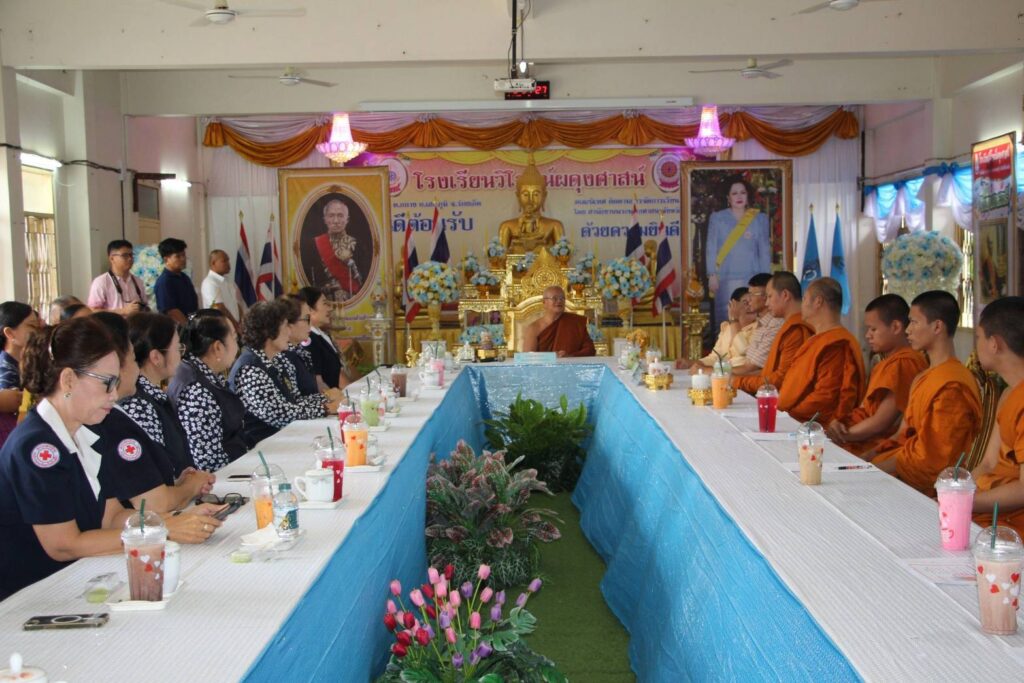 จากนั้น คณะได้เดินทางต่อไปยังโรงเรียนวิโรจน์ผดุงศาสน์ เพื่อเยี่ยมเด็กชายปวริศ คำนุช นักเรียนชั้น ม.3 ผู้มีผลการเรียนดีแต่ขาดแคลนทุนทรัพย์ พร้อมมอบสิ่งของจำเป็นเพื่อเป็นกำลังใจให้เดินหน้าสู่การศึกษาอย่างเต็มที่