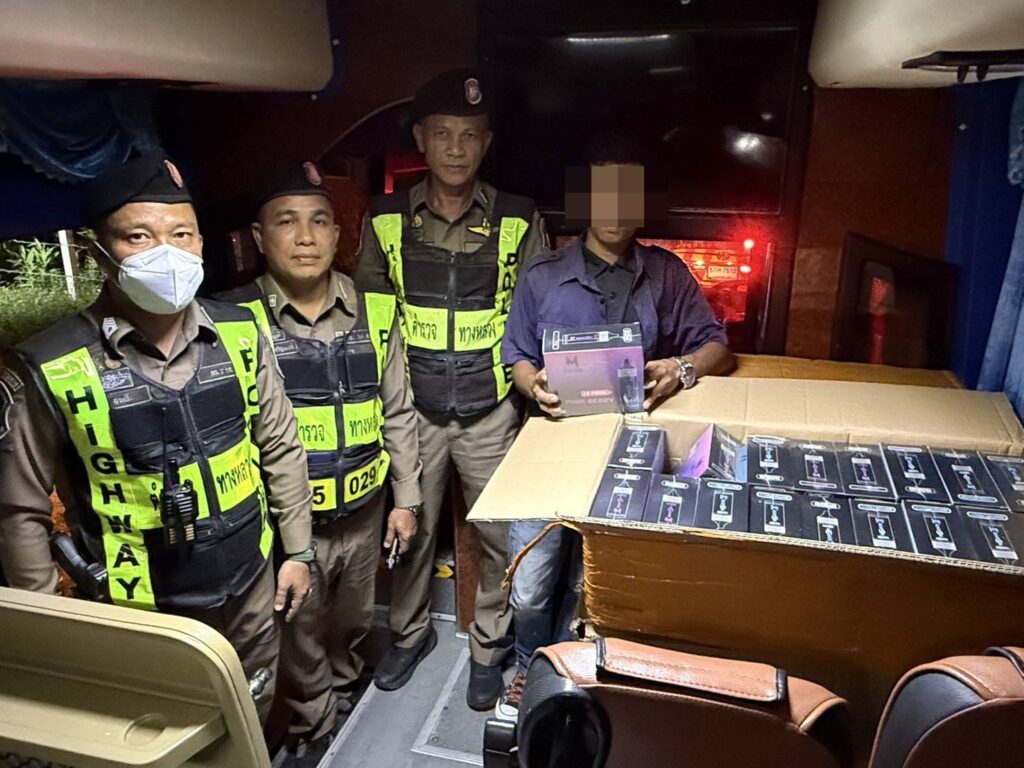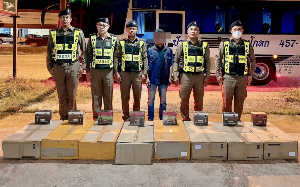 ตำรวจทางหลวงจับหนุ่มขับรถมินิบัสรับจ้างขนบุหรี่ไฟฟ้าเป็นรายได้เสริม 8 ลัง 1,440 ชิ้น