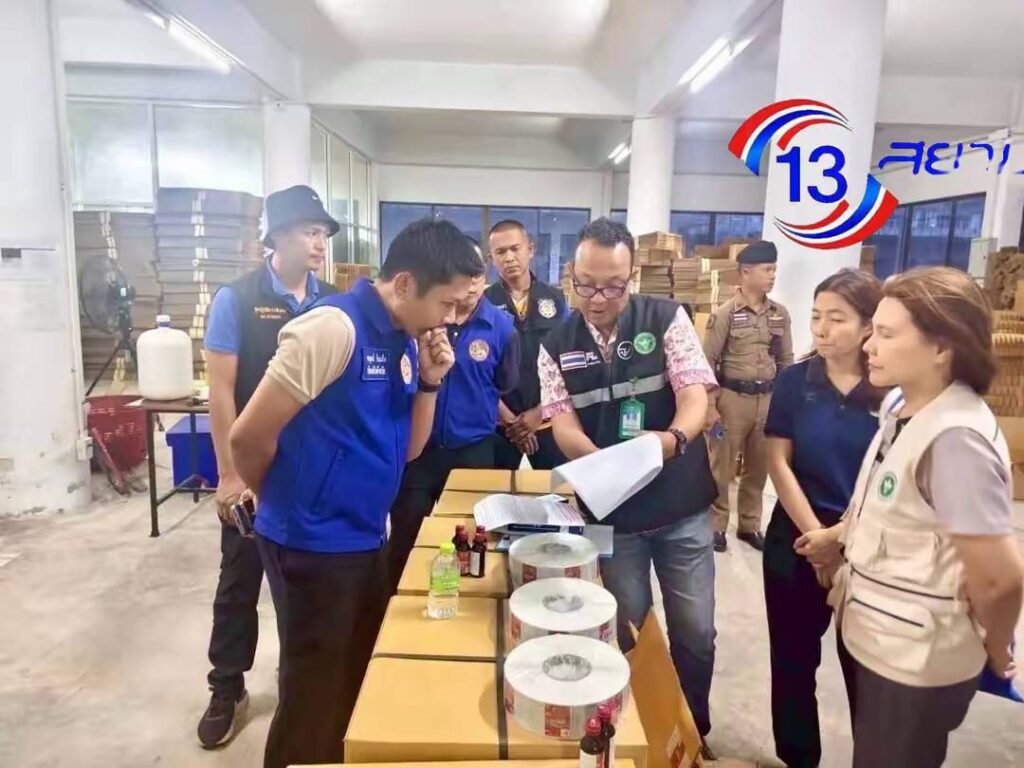 เมื่อวันที่ 9 กันยายน 2568 เวลา 17.30 น. ภายใต้การอำนวยการของ นายธีรุตม์ ศุภวิบูลย์ผล ผู้ว่าราชการจังหวัดสุราษฎร์ธานี นายนันธวัช เจริญวรรณ รองผู้ว่าราชการจังหวัดสุราษฎร์ธานี ว่าที่ร้อยโท สมชาย เรืองจันทร์ ปลัดจังหวัดสุราษฎร์ธานี นายแพทย์กู้ศักดิ์ กู้เกียรติกูล นายแพทย์สาธารณสุขจังหวัสุราษฎร์ธานี พันตำรวจเอกนิพนธ์ ชาตรี ผู้กำกับการสถานีตำรวจพุนพิน และนายวิสูตร อินทรกำเนิด นายอำเภอพุนพิน มอบหมายให้ นายคณุตม์ อ้วนเส้ง ป้องกันจังหวัดสุราษฎร์ธานี, นายหมวดเอกฉัตรชัย รักรณรงค์ ผู้บังคับกองร้อยอาสารักษาดินแดนจังหวัดสุราษฎร์ธานีที่ 1 พร้อมด้วย ชุดปฏิบัติการพิเศษป้องกันและปราบปรามการกระทำความผิดตามนโยบายผู้ว่าราชการจังหวัดสุราษฎร์ธานี (ฉก.ท่าเพชร) บูรณาการร่วมเจ้าหน้าที่ที่เกี่ยวข้อง ร่วมกันตรวจค้น อาคารพาณิชย์ 3 ชั้น เลขที่ 11/35-38 หมู่ที่ 3 ตำบลหนองไทร อำเภอพุนพิน จังหวัดสุราษฎร์ธานี และสามารถจับกุมผู้ผลิตยาแก้ไอปลอม ได้ผู้ต้องหา 1 ราย ทราบชื่อคือ นายสมชายฯ อายุ 53 ปี ชาวจังหวัดสงขลา พร้อมด้วยของกลาง ที่สำคัญ ประกอบด้วย ยาแก้ไอ ติดฉลากยี่ห้อ DITISSIN (ดาทิสซิน) ชนิดน้ำเชื่อม ขนาด 60 มิลลิลิตร จำนวน 19,844 ขวด และขวดเปล่าอีก 10,402 ขวด / ฝาขวด 14,040 ฝา/เครื่องตัดฉลาก 2 เครื่อง /ถังสแตนเลส 1 ถัง ขนาด 1,000 ลิตร /เครื่องรัดกล่อง 1 เครื่อง /ปั๊มลม 2 เครื่อง /เครื่องปิดฝาขวด 8 เครื่อง และ เครื่องบรรจุของเหลว 8 เครื่อง