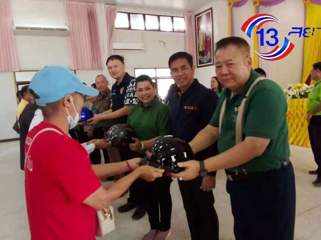 เทศบาลตำบลท่าข้างอำเภอเฉลิมพระเกียรติ มอบหมวกนิรภัย สวมใส่ปลอกภัย 100 %