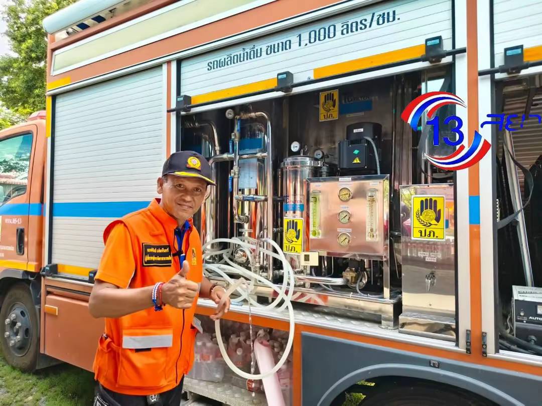 ปภ.สิงห์บุรี เตรียมพร้อมรถผลิตน้ำดื่ม รถโรงครัว เต็นท์ บรรเทาทุกข์น้ำท่วมสิงห์บุรี