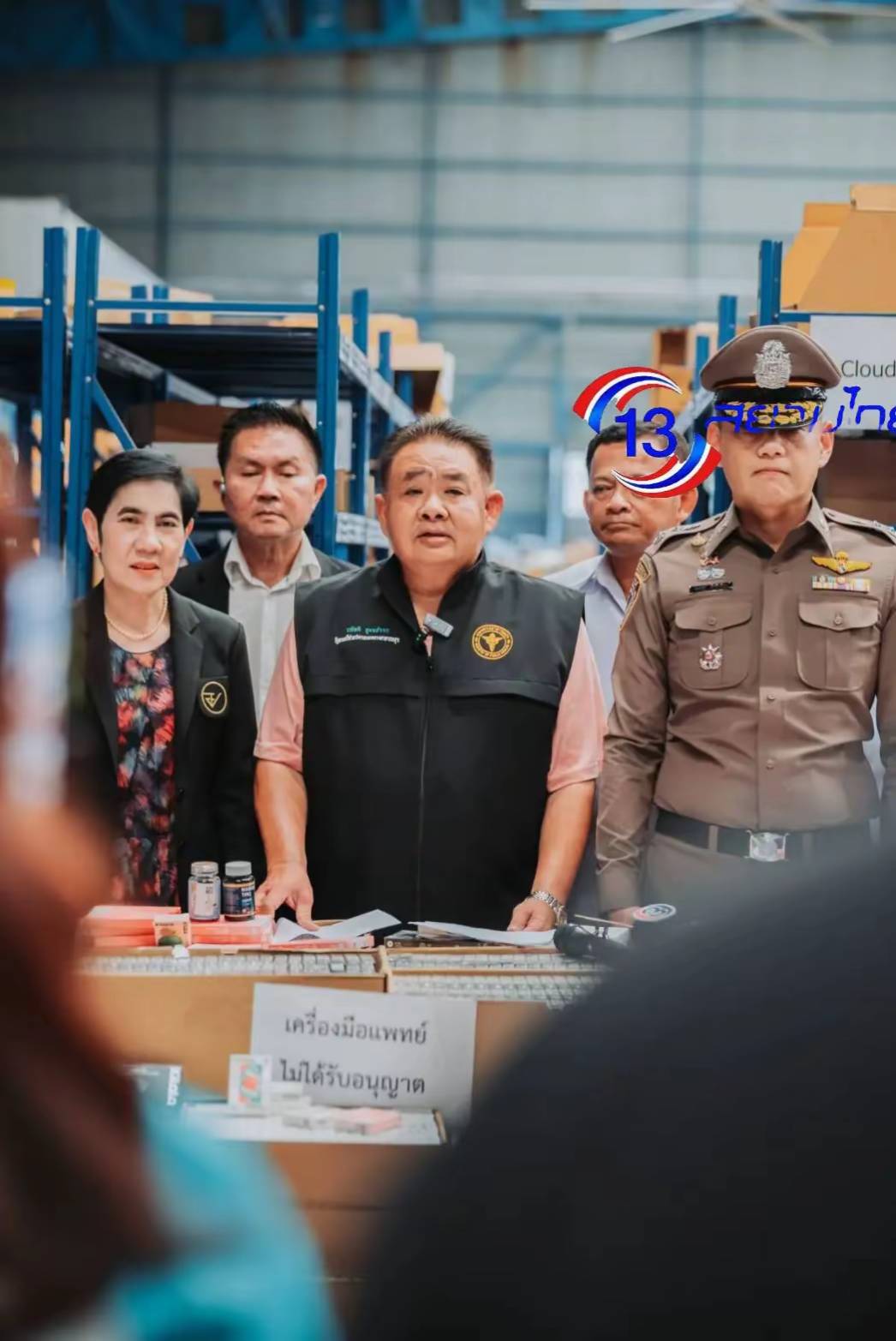 เจ้าหน้าที่ชุดตรวจยึด นำโดย พ.ต.ท.หญิง อนุสรา บัวแดง สว.กก.4 บก.ปคบ. พร้อมเจ้าหน้าที่ตำรวจ กก.4 บก.ปคบ. และเจ้าหน้าที่สำนักงานคณะกรรมการอาหารและยา