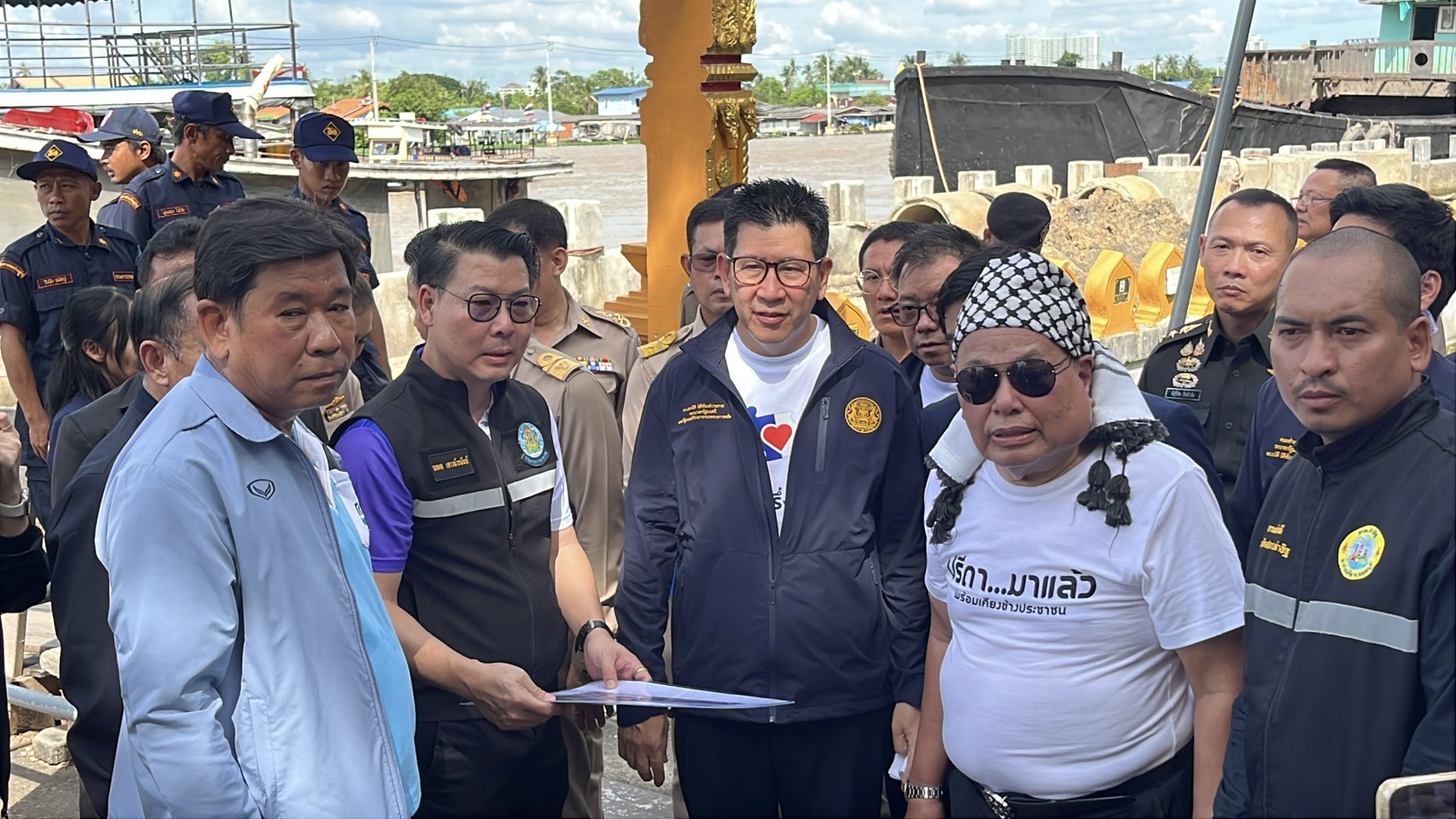 การลงพื้นที่แสดงให้เห็นถึงความมุ่งมั่นของรัฐบาลในการแก้ไขปัญหาความเดือดร้อนของประชาชนอย่างใกล้ชิด และสะท้อนให้เห็นว่าจังหวัดนนทบุรีให้ความสำคัญอย่างยิ่งกับการขับเคลื่อนนโยบายของรัฐบาล เพื่อยกระดับคุณภาพชีวิตของประชาชนอย่างยั่งยืน โดยคณะของรองนายกรัฐมนตรี ได้ลงเรือโดยสารขนาดใหญ่ เพื่อตรวจสภาพริมเขื่อนของวัดเชิงเลนและวัดท่าอิฐ ที่ยังสร้างไม่แล้วเสร็จ โดยมีเจ้าหน้าที่จาก กรมโยธาและกรมชลประทานชี้แจง ถึงอุปสรรคและสาเหตุ ซึ่งมีผู้เสียหายริมน้ำเจ้าพระยา นำเรื่องฟ้องร้องอยู่ที่ศาลปกครองสูงสุดในขณะนี้ และอยู่ระหว่างขั้นตอนเจรจา เพื่อหาข้อยุติ โดยทางรองนายกรัฐมนตรีอยากให้มีการพูดคุยกับชาวบ้านเพื่อหาทางออกร่วมกัน