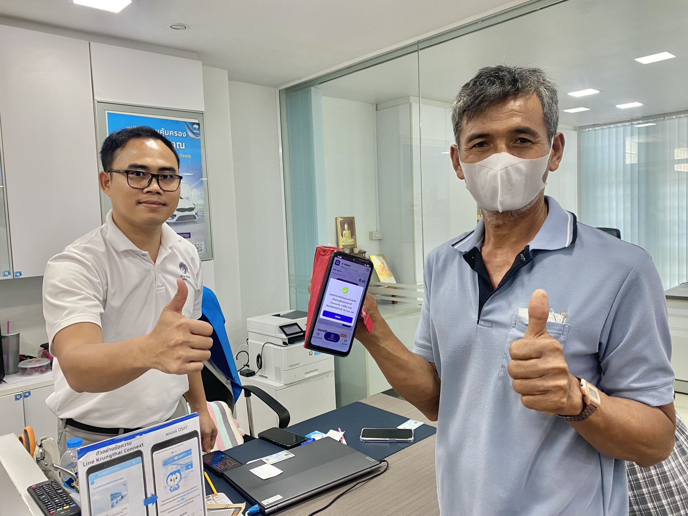 โดยมีทั้งประชาชนรายเก่าและรายใหม่ บางรายพบปัญหายืนยันตัวตนไม่ได้ หรือลืมรหัสผ่านแอปฯ “เป๋าตัง” เจ้าหน้าที่ธนาคารคอยให้คำแนะนำอย่างใกล้ชิด พร้อมติดตั้งป้ายประชาสัมพันธ์ขั้นตอนการดำเนินการ 8 ขั้นตอนเพื่ออำนวยความสะดวก