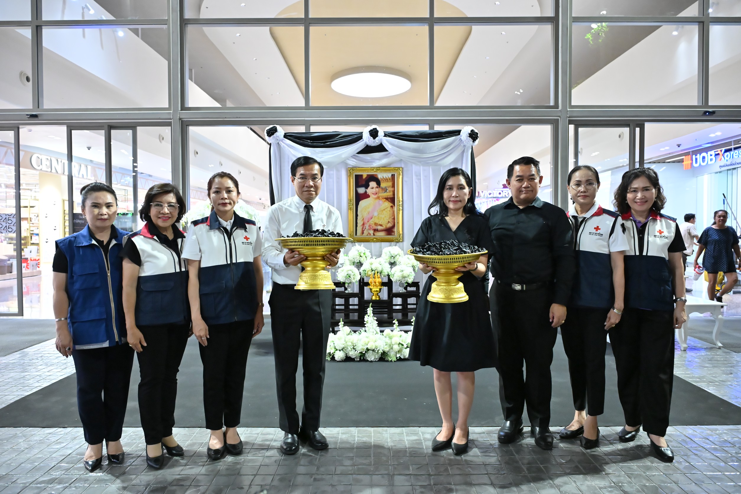 วันที่ 29 ตุลาคม 2568 ที่ชั้น 2 โซน Semi Outdoor ศูนย์การค้าเซ็นทรัล นครปฐม นางสาวอโรชา นันทมนตรี ผู้ว่าราชการจังหวัดนครปฐม พร้อมด้วย รองผู้ว่าราชการจังหวัด ผู้บริหารเซ็นทรัลนครปฐม รองนายกเหล่ากาชาดจังหวัด คณะกรรมการและสมาชิกเหล่ากาชาด หัวหน้าส่วนราชการและเจ้าหน้าที่ ร่วมกิจกรรมจิตอาสาทำโบสีดำไว้อาลัย จำนวน 10,000 ชิ้น สำหรับติดหน้าอกหรือแขนเสื้อ เพื่อนำไปแจกให้กับประชาชนทั่วไป สำหรับใช้เป็นเครื่องหมายถวายความอาลัยแด่สมเด็จพระนางเจ้าสิริกิติ์ พระบรมราชินีนาถ พระบรมราชชนนีพันปีหลวง