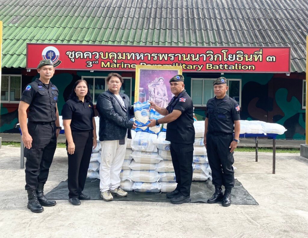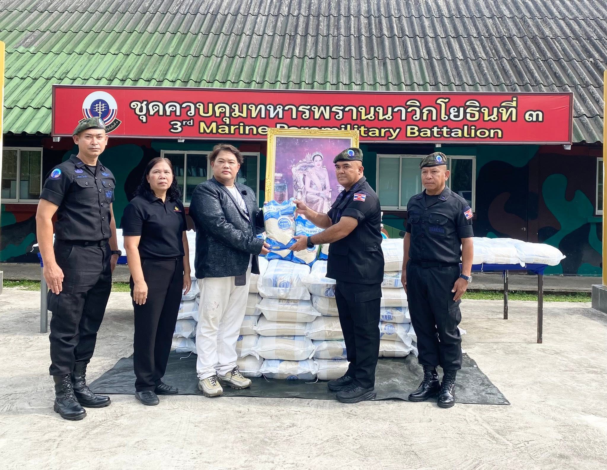 โดยจุดแรกบริเวณหน้าศาลาราชการุณย์จะมอบให้กับประชาชนในพื้นที่จำนวน 500 ถุง จุดที่สองมอบให้กับเจ้าหน้าที่ทหาร ชุดควบคุมทหารพรานนาวิกโยธินที่ 3 ที่เสียสละดูแลผืนแผ่นดินไทยตลอดแนวเทือกเขาบรรทัด จำนวน 500 ถุง และจุดที่สามได้ขอความอนุเคราะห์ นายเชิดศักดิ์ ชุ่มนาเสียว นายอำเภอคลองใหญ่ ช่วยส่งมอบข้าวสารจำนวน 1,000 ถุง ตอนช่วงบ่าย 14.00น.ที่หอประชุมเฉลิมพระเกียรติ 88 พรรษาของคลองใหญ่ โดยมีคุณธิติพร จุติมานนท์ หรือ บอย เอ็นเตอร์เทน มาลงพื้นที่พบปะพูดคุยกับหน่วยงานท้องถิ่นและกิ่งกาชาดอําเภอคลองใหญ่ให้กับผู้ใหญ่บ้าน ผู้นําท้องถิ่น เพื่อนําข้าวสารไปมอบให้กับกลุ่มเปราะบาง ในเขตพื้นที่อําเภอคลองใหญ่ 20 หมู่บ้าน หมู่ละ 50 ถุง เป็น