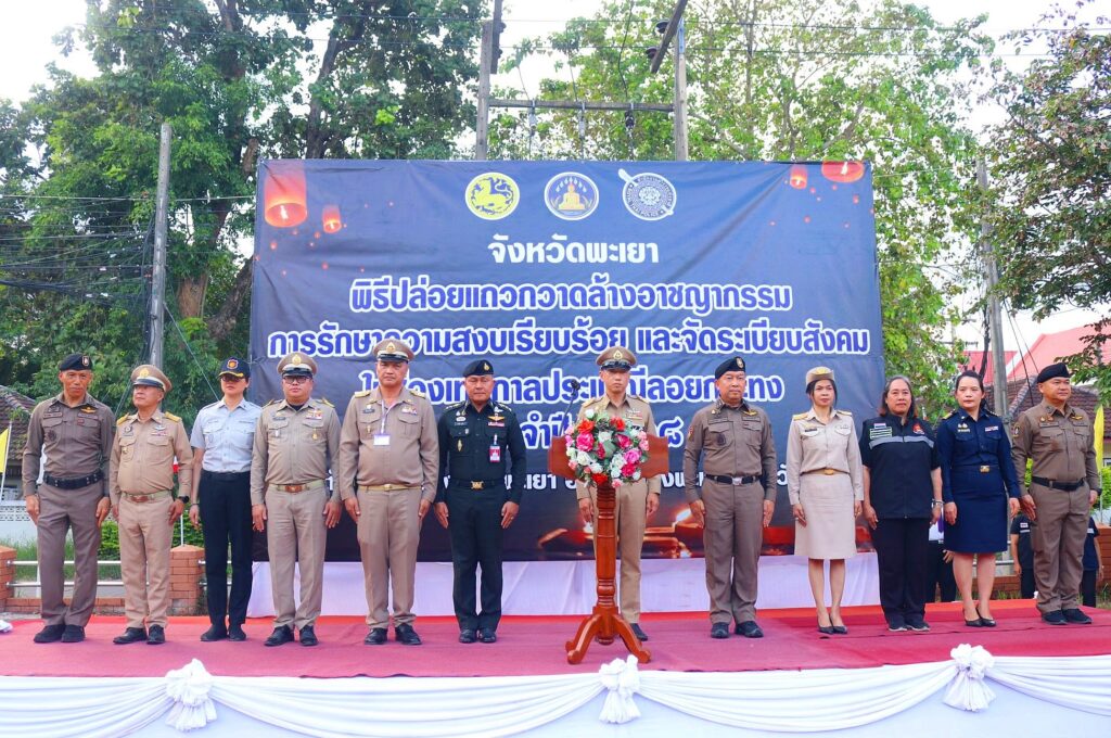 วันที่ 3 พฤศจิกายน 2568 เวลา 16.30 น. ที่บริเวณหน้ากองบังคับการตำรวจภูธรจังหวัดพะเยาพล.ต.ต.พงษ์สวัสดิ์ ไชยบาล ผบก.ภ.จว.พะเยา พร้อมด้วย พ.ต.อ.พรเทพ น้องการ รอง ผบก.ภ.จว.พะเยา, พ.ต.อ.บัญชา อินถา รอง ผบก.ภ.จว.พะเยา, พ.ต.อ.เฉลิมชาติ ยาวิชัย ผกก.สภ.เมืองพะเยา, มณฑลทหารบกที่ 34, กองอำนวยการรักษาความมั่นคงภายในราชอาณาจักร จังหวัดพะเยา(กอ.รมน.), ฝ่ายปกครอง, เทศบาลเมืองพะเยา,สาธารณสุขจังหวัดพะเยา, สำนักงานป้องกันและบรรเทาสาธารณภัยจังหวัดพะเยา, สมาคมกู้ภัยพะเยา และอาสาสมัครตำรวจบ้าน ร่วมปล่อยแถวกวาดล้างอาชญากรรม การรักษาความสงบเรียบร้อย และจัดระเบียบสังคม ช่วงเทศกาลประเพณีลอยกระทง 2568 โดยมี นายภูธนะ ชมภูมิ่ง รองผู้ว่าราชการจังหวัดพะเยา รักษาราชการแทนผู้ว่าราชการจังหวัดพะเยา เป็นประธานในพิธีฯ นายนิกร ยะกะจาย นายอำเภอเมืองพะเยา รักษาราชการแทนปลัดจังหวัดพะเยา กล่าวรายงานถึงวัตถุประสงค์