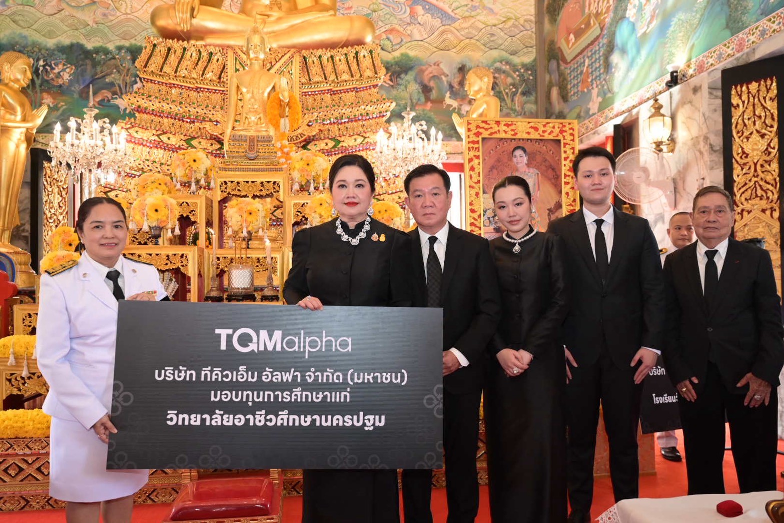 โอกาสนี้ นางนภัสนันท์ พรรณนิภา ประธานเจ้าหน้าที่บริหาร บริษัท ทีคิวเอ็ม อัลฟา จำกัด (มหาชน) พร้อมด้วยคณะผู้บริหาร มอบเงินบำรุงการศึกษาแก่ผู้แทนวิทยาลัยอาชีวศึกษานครปฐม โดยผู้มีจิตศรัทธาจาก บริษัท ทีคิวเอ็ม อัลฟา จำกัด (มหาชน) และประชาชนที่มาร่วมพิธีบริจาคเงินในเบื้องต้น รวมทั้งสิ้น 3,456,959 บาท