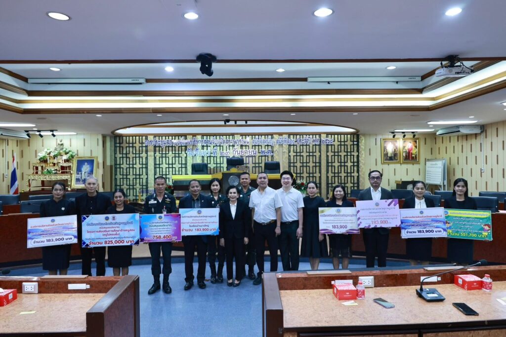 วันนี้ (14 พฤศจิกายน 2568) เวลา 10.00 น. ณ ห้องประชุมสภาองค์การบริหารส่วนจังหวัดสุราษฎร์ธานี นางโสภา กาญจนะ นายกองค์การบริหารส่วนจังหวัดสุราษฎร์ธานี เป็นประธานในการมอบเงินสนับสนุนงบประมาณประจำปี พ.ศ. 2569 ให้แก่ส่วนราชการและองค์กรศาสนา เพื่อจ้างครู จำนวน 46 แห่ง เป็นเงินทั้งสิ้น 9,859,200 บาท
