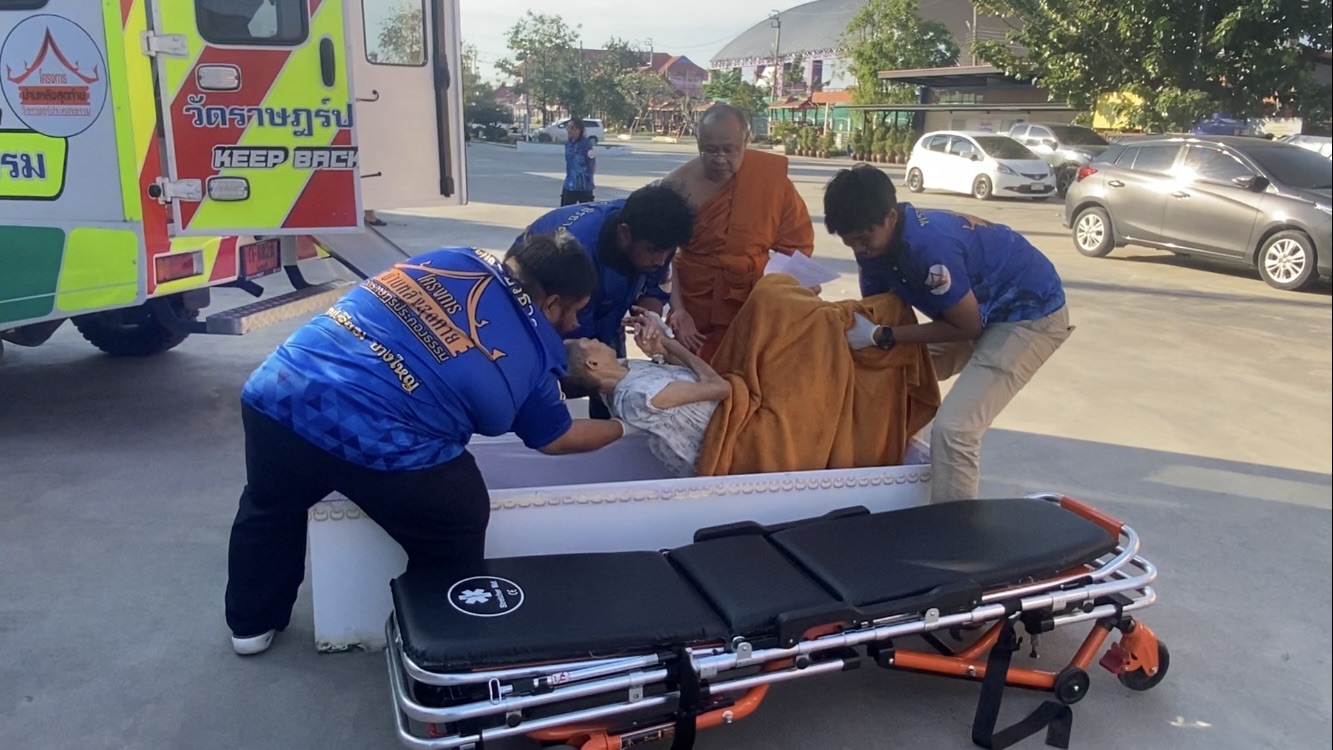 นนทบุรี ตายแล้วฟื้น! ญาตินำร่างคุณยายวัย 65 ปี ใส่โลงศพขึ้นรถจากตจว. หวังเผาฟรีวัดดัง ยายเคาะโลงเรียก-จนท.เร่งส่งรพ.