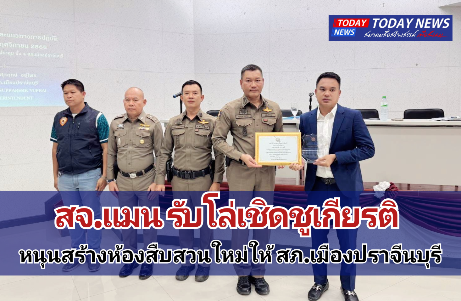 ปราจีนบุรี – สจ.แมน รับมอบโล่เชิดชูเกียรติ หลังสนับสนุนสร้างห้องสืบสวนใหม่ให้ สภ.เมืองปราจีนบุรี
