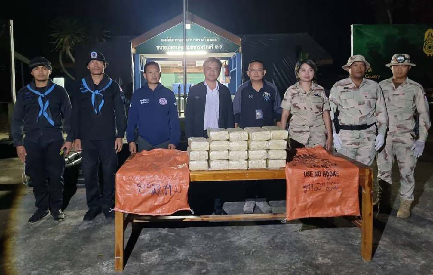 กระทั่งเวลา 17.30 น. ( 24 พ.ย.) เจ้าหน้าที่ได้ซุ่มเฝ้าดูบริเวณที่ได้รับแจ้งดังกล่าว ได้มีเรือกีบเพลายาวแล่นมาจากประเทศเพื่อนบ้าน เข้ามาจอดที่บริเวณริมฝั่งแม่น้ำโขงบ้านนาเวียงแก ต.นาสีนวน อ.เมือง จ.มุกดาหาร ต่อมาคนขับเรือได้โยนกระสอบสีขาวขึ้นมาบนฝั่ง เจ้าหน้าที่ชุดซุ่มได้เข้าไปเพื่อแสดงตัวและตรวจสอบ คนขับเรือเห็นเจ้าหน้าที่ได้หันหัวเรือแล้วแล่นไปประเทศเพื่อนบ้าน