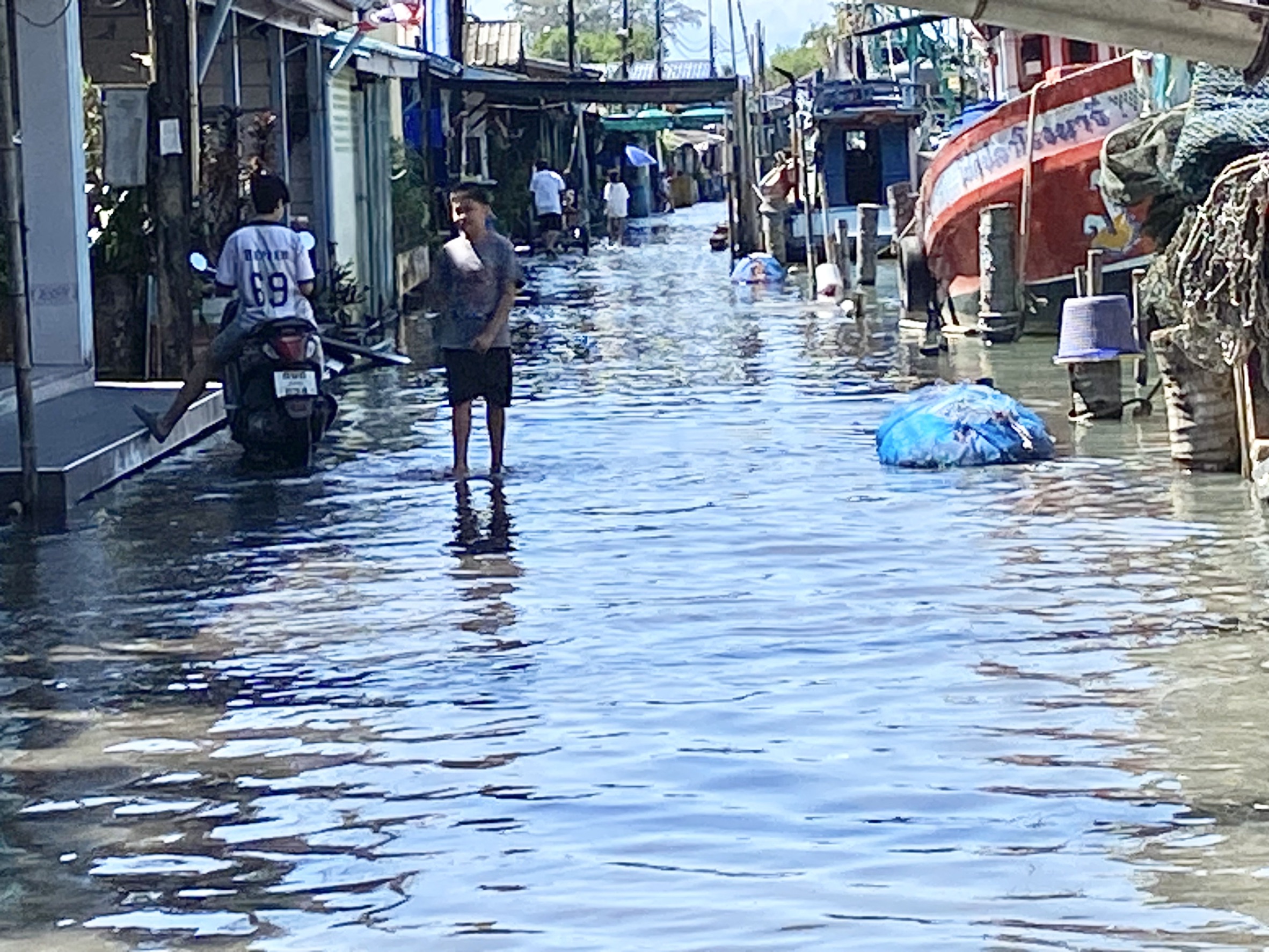 .เมื่อช่วงสายๆวันที่ 7 ธ.ค. 68 ตั้งแต่ช่วงสายๆจนถึงเที่ยงที่ผ่านมา ปรากฎการณ์น้ำทะเลหนุนสูง 2 วันติดต่อแต่วันนี้นํ้าทะเลหนุนสูงจริงๆและได้ส่งผลกระทบกับหลายๆด้านของประชาชนในหลายพื้นที่ โดยชุมชนบ้านไม้รูด หมู่ 6 ตำบลไม้รูด อำเภอคลองใหญ่ จังหวัดตราด ชาวประมงที่เลี้ยงปลาในกระชังได้รับผลกระทบ โดยปลากะพงที่เลี้ยงไว้ในกระชังจำนวนหนึ่งหลุดไปกับน้ำ จนเกษตรกรต้องเร่งปิดตาข่ายด้านบนของกระชังเลี้ยงปลา นอกจากความเสียหายต่อการประมงแล้ว น้ำทะเลยังหนุนสูงขึ้นถึงพื้นบ้านของประชาชนหลายหลังคาเรือนต้องรีบเก็บข้าวของเครื่องใช้ ป้องกันความเสียหาย โดยเฉพาะเครื่องใช้ไฟฟ้าที่ต้องขนขึ้นที่สูง ในขณะที่บริเวณริมคลองติดกับทะเลในพื้นที่อําเภอคลองใหญ่ เช่น คลองใหญ่ บ้านคลองสนคลองมะขามและคลองมะนาว ในชุมชนทั่วไปในพื้นที่ มวลน้ำจากทะเลอ่าวไทยตราดเอ่อล้นเข้าท่วมเส้นทาง และบ้านเรือนประชาชน โดยเฉพาะในพื้นที่ลุ่มต่ำ ตลอดแนวทะเลในแต่ละเขตและตําบล นอกจากนี้บริเวณบ้านคลองมะขามท่วมหลายแห่งจนเส้นทางถนนและทางเดินเท้าสัญจรติดขัด บางคันก็ลุย นํ้าเค็มไม่รู้จะไปไหนก็ต้องลุยนํ้า นางสุรีย์พรบอกว่าไม่เคยเห็นนํ้าทะเลหนุนสูงขนาดนี้ในรอบปีนี้ถือว่าแรงมาก/วิเชียร ม่วงสี ผู้สื่อข่าวสมาคมคนข่าวภูธร