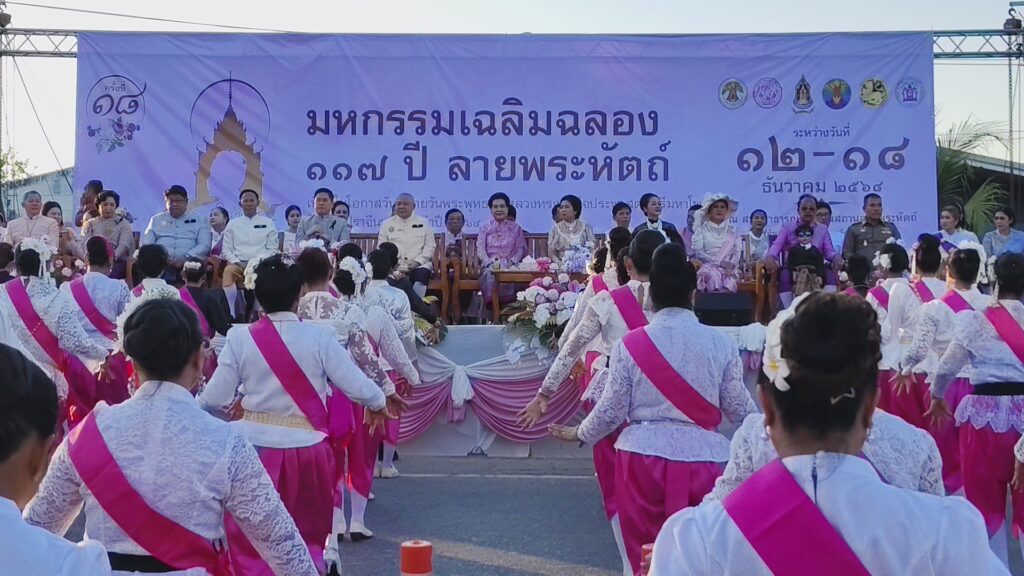 วันที่ 18 ธ.ค. 68 นายวีระพันธ์ ดีอ่อน ผู้ว่าราชการจังหวัดปราจีนบุรี ได้เดินทางมาที่โบราณสถานลายพระหัตถ์ อ.ศรีมหาโพธิ์ จ.ปราจีนบุรี เพื่อเป็นประธานในพิธีเปิดงานมหกรรมเฉลิมฉลอง 117 ปี ลายพระหัตถ์ เนื่องในโอกาสวันคล้ายวันพระพุทธเจ้าหลวงทรงเสด็จประพาสดงศรีมหาโพธิ์ จ.ปราจีนบุรี ครั้งที่ 18 โดยมี น.ส.จุฑามาศ บัวเผื่อน นายอำเภอศรีมหาโพธิ กล่าววัตถุประสงค์การจัดงาน ภายในงานมีทางด้านหัวหน้าส่วนราชการ ,นางรำจำนวน 1,117 คน , แขกผู้มีเกียรติรวมถึงประชาชนมาร่วมงานในครั้งนี้