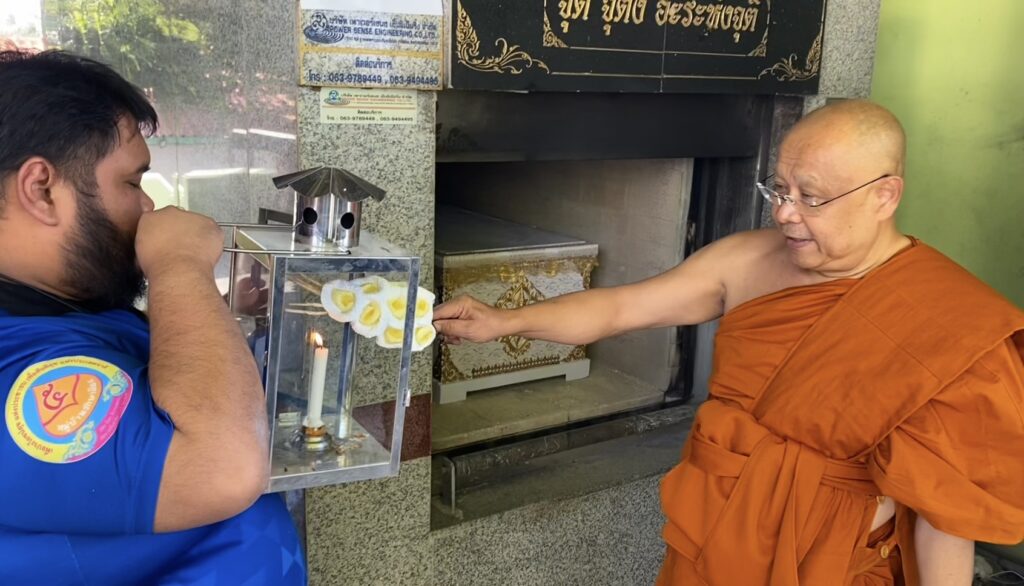 ทางด้านพระกิตติวชิรธาดา เจ้าคณะอำเภอบางใหญ่,เจ้าอาวาสวัดราษฎร์ประคองธรรม กล่าวว่า วันนี้ที่วัดมีการเผาศพ 12 ศพ เพราะติดค้างจากปีใหม่ ทางวัดจะเผาศพเฉพาะวันอังคาร วันพฤหัสบดี และวันอาทิตย์ จะเผาทั้งหมด 3 วัน ซึ่งวันแรกของปีคือวันที่ 1 ม.ค.69 มีศพมานอนคอยอยู่หลายศพแล้ว ทางวัดจึงนำมารวมเผาด้วยกันในวันอาทิตย์วันนี้ิ เพราะทางวัดรับศพไม่มีญาติ และญาติที่ไม่มีเงิน เดือนธันวาคมที่ผ่านมามีศพติดต่อเข้ามา 92 ราย และปี 2568 ที่ผ่านมา เผาศพไปทั้งหมด 736 ศพ เพราะทางวัดช่วยเพื่อนมนุษย์ด้วยกัน หากใครไม่มีกำลังทรัพย์ ไม่มีญาติสามารถมาที่วัดได้เลย หรือหากโยมท่านใดอยากร่วมทำบุญโลงศพ น้ำมันเผาศพ ก็สามารถมาร่วมบุญได้ที่วัด ศพ 1 ศพ จะใช้น้ำมัน 10 ลิตร และโรง 1 ใบ ราคา 1500 บาท โลงจะมีผ้าปูและปลอกหมอนอย่างดี และอาตมาขอให้ปีใหม่นี้ญาติโยมเจอแต่ความสุข คิดสิ่งใดขอให้สำเร็จทุกประการในปี 2569 นี้ ขอให้ทุกคนมีแต่ความสุขตลอดปี ” เจริญพรโยม “