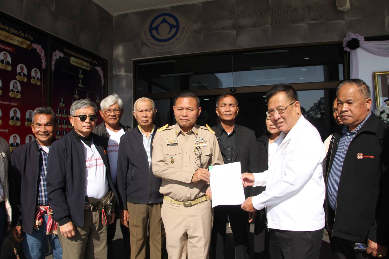 นายพีรพงศ์ สุรเสน ประธานชมรมพิทักษ์คุณธรรมในสหกรณ์ออมทรัพย์ครูร้อยเอ็ด พร้อมด้วย นายคมกฤช พันธุ์พาณิชย์ รองประธานชมรมฯ นายสุวิช กัญยวงศ์หา นายประเสริฐ สมอุดร นายสมจิตร ดิษเจริญ ที่ปรึกษาชมรมฯ และนายประจวบ นาก้อนทอง เลขานุการ พร้อมแกนนำและสมาชิกสหกรณ์ประมาณ 20 คน เดินทางเข้ายื่นหนังสือต่อ นายสุชาติ พุทธลา ประธานคณะกรรมการดำเนินการสหกรณ์ออมทรัพย์ครูร้อยเอ็ด จำกัด ณ บริเวณหน้าอาคารสหกรณ์ออมทรัพย์ครูร้อยเอ็ด จำกัด อำเภอเมืองร้อยเอ็ด จังหวัดร้อยเอ็ด