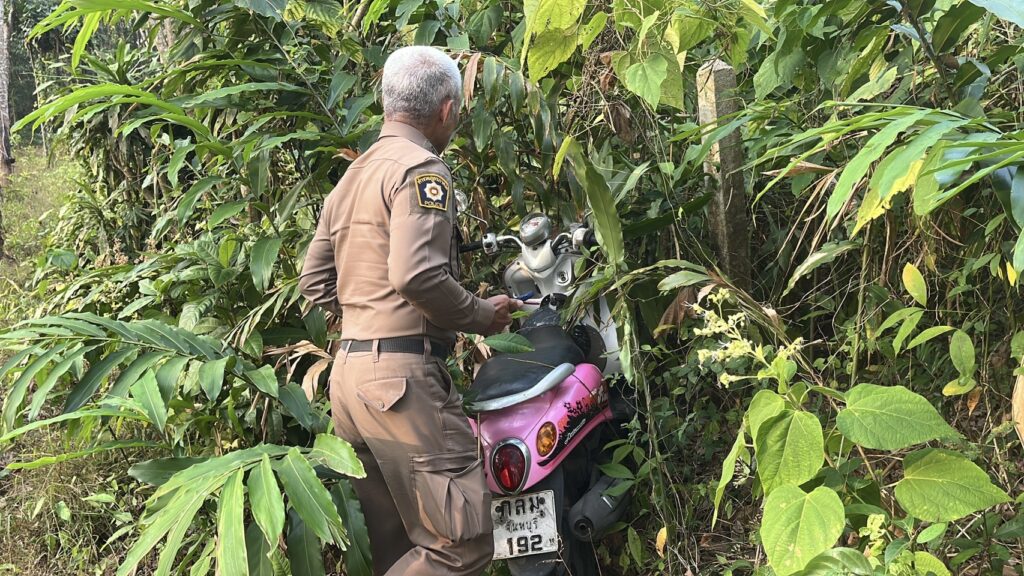 จากการสอบถามกับนายวินัย เกรียงไกร อายุ 59 ปี ผู้ที่พบศพคนแรกเล่าว่า ตนเองออกมากรีดยางในช่วงประมาณ 05.00 น. ได้พบรถจักรยานยนต์จอดอยู่ แต่ไม่ได้เดินมาดูในห้องร้าง ตนเองรอจนฟ้าสาง จึงได้เดินมาดูตามห้องต่างๆ จนมาถึงห้องเลขที่ 4 ต้องตกใจเพราะพบชายผู้คออยู่ จึงรีบโทรแจ้งผู้นำชุมชน ตำรวจมาตรวจสอบ