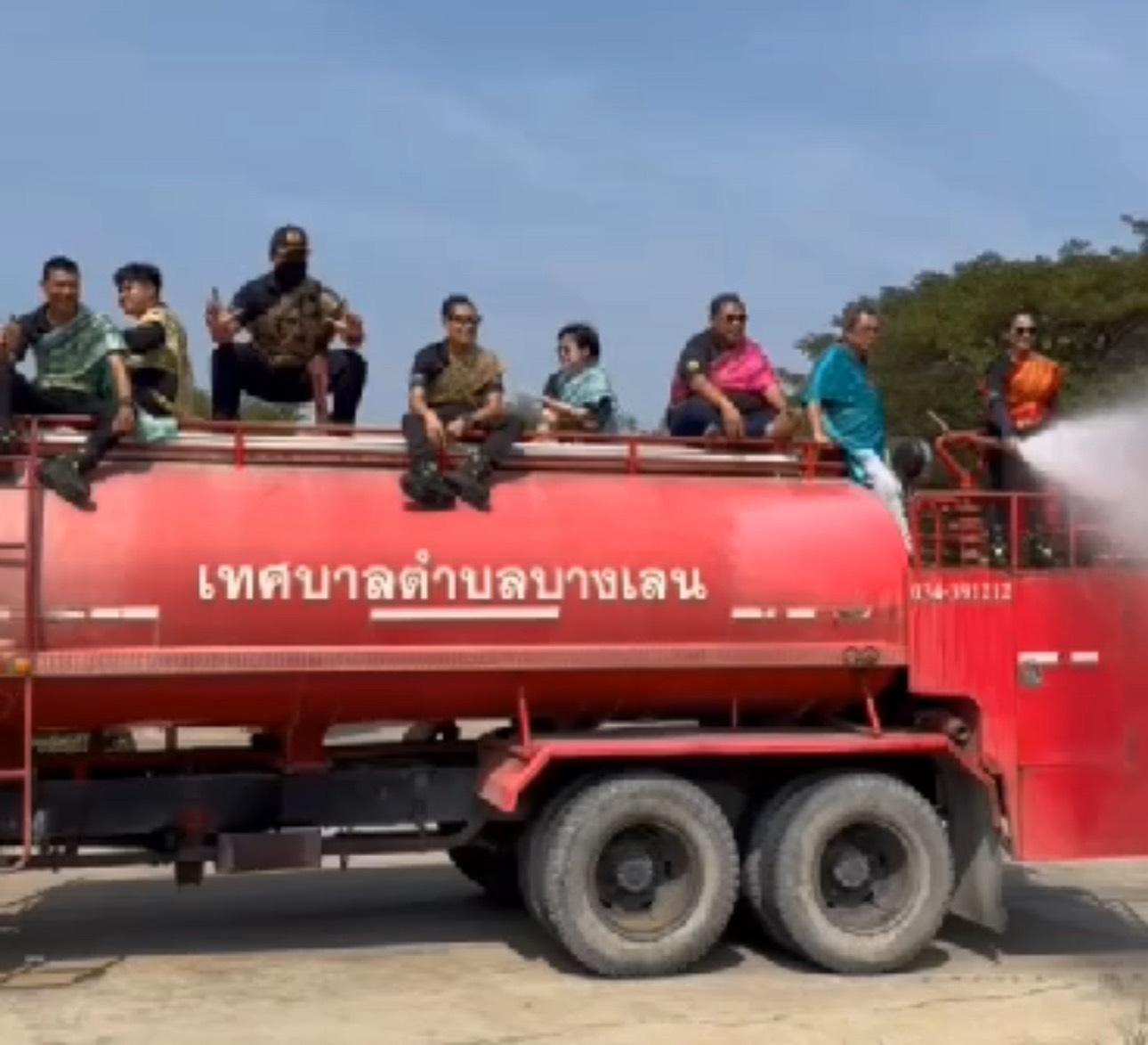 ได้ออกมาเผยแพร่คลิปที่สร้างรอยยิ้มให้ผู้ที่พบเห็นหลังได้มีเจ้าหน้าแต่งกายด้วยชุดไทยหลากสีพร้อมรถน้ำดับเพลิงของเทศบาลตำบลบางเลน อ.บางเลน จ.นครปฐม ซึ่งได้ใช้สายยางต่อจากรถดับเพลิงฉีดกวาดล้างถนน โดยมีการเต้นแสดงลีลาสร้าง เรียกรอยยิ้มและความฮือฮาให้แก่ผู้ใช้รถใช้ถนนที่สัญจรผ่านไปมา
