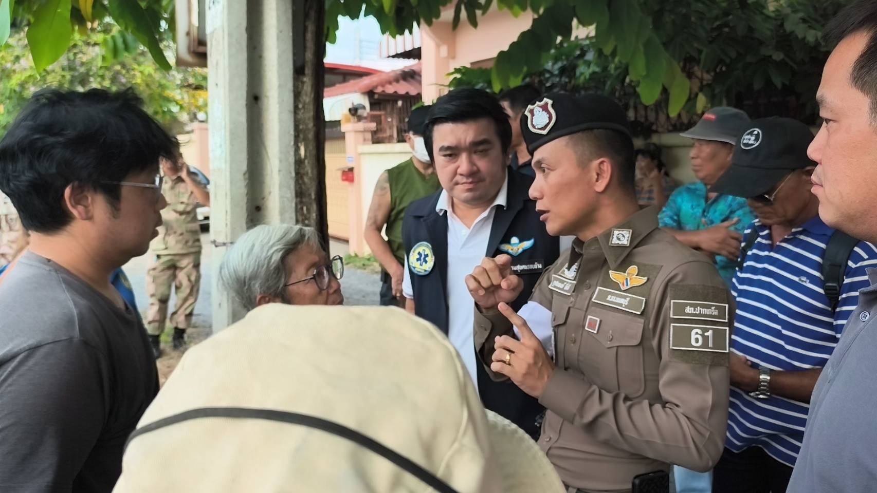 เวลาต่อมาพันตำรวจโท ฐาปนพงษ์ พึ่งมี สารวัตรจราจรสภ.ปากเกร็ด และว่าที่ ร.ต.ภาณุพงศ์ บรรดาศักดิ์ หรือ เอ บรรดาศักดิ์ อดีตสมาชิกสภาเทศบาลนครปากเกร็ด ได้มาเจรจากับชาวบ้าน โดยทางพันตำรวจฐาปนพงษ์