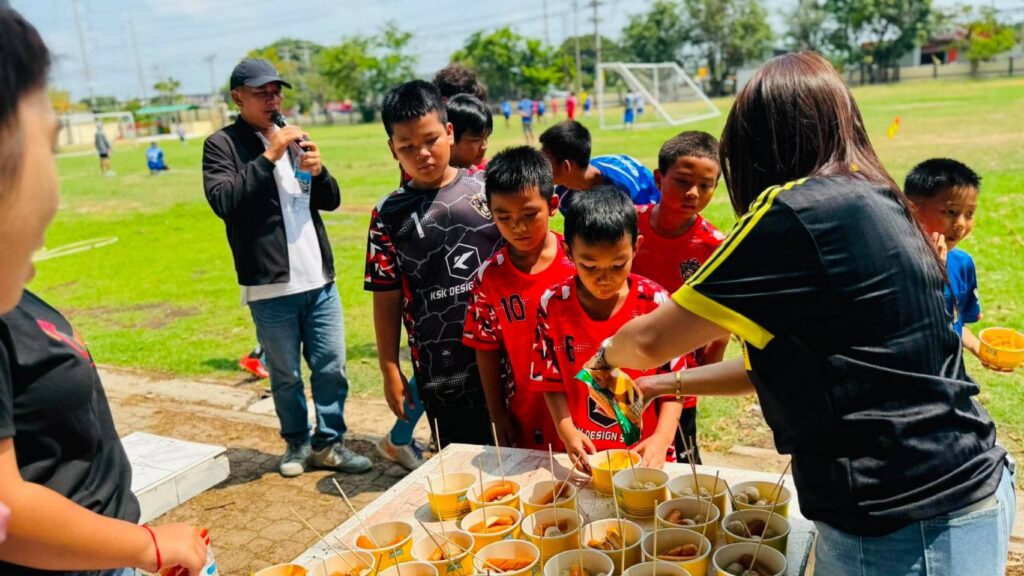ทีมบัวสุวรรณ(โค้ชอิฐ) กับทีมBigball Academy(โค้ชบิ๊ก) บรรยากาศเป็นเช่นเดิม รอยยิ้ม เสียงหัวเราะ เด็กและผู้ปกครอง ก็ขอขอบพระคุณ ผู้ปกครอง ที่นำอาหาร และเครื่องดื่ม มาสนับสนุน แจก ให้เด็ก และ กรรมการ ที่เป็นจิตอาสา มาทำหน้าที่ โดยไม่คิดค่าใช้จ่าย …กิจกรรมที่สร้างขึ้นมา ของทีมบัวสุวรรณ ที่ทำด้วยจิตอาสา มา เป็นระยะ 1 ปี กว่าๆ โดยที่ไม่มีค่าใช้จ่าย เพราะ ผู้บริหารทีม มองเห็น เด็กที่ ขาด โอกาส หรือ ใจรัก ในการเล่นฟุตบอล ขาดผู้สนับสนุน หรือให้โอกาสกับเด็กคนนั้นเลย ผู้บริหารทีม บัวสุวรรณ จึงเปิดโอกาส ให้เด็กได้เข้ามาเล่น แบบมีระบบ สิ่งที่สำคัญในการสอนคือ เรื่องวินัย นิสัย สร้าง ความประพฤติ ไปในทางที่ดี รู้จัก มี ความรับผิดชอบ รู้จักผิด รู้จักถูก และสร้างความอบอุ่น ให้กับครอบครัว ของเด็กๆ โดยให้ เด็กๆ ได้พูดคุย ไปในทิศทางที่ดี เด็กเล่นดี มีวินัย ไปมา ลาไหว้ ใครเห็นใครก็รัก ไปไหนใครๆก็อยากพาไปด้วย เด็กวันนี้ จะเป็นผู้ใหญ่ในวันหน้า และจะมีอนาคตที่ดี ต้องมีการปลูกฝัง ไปในทิศทางที่ดี