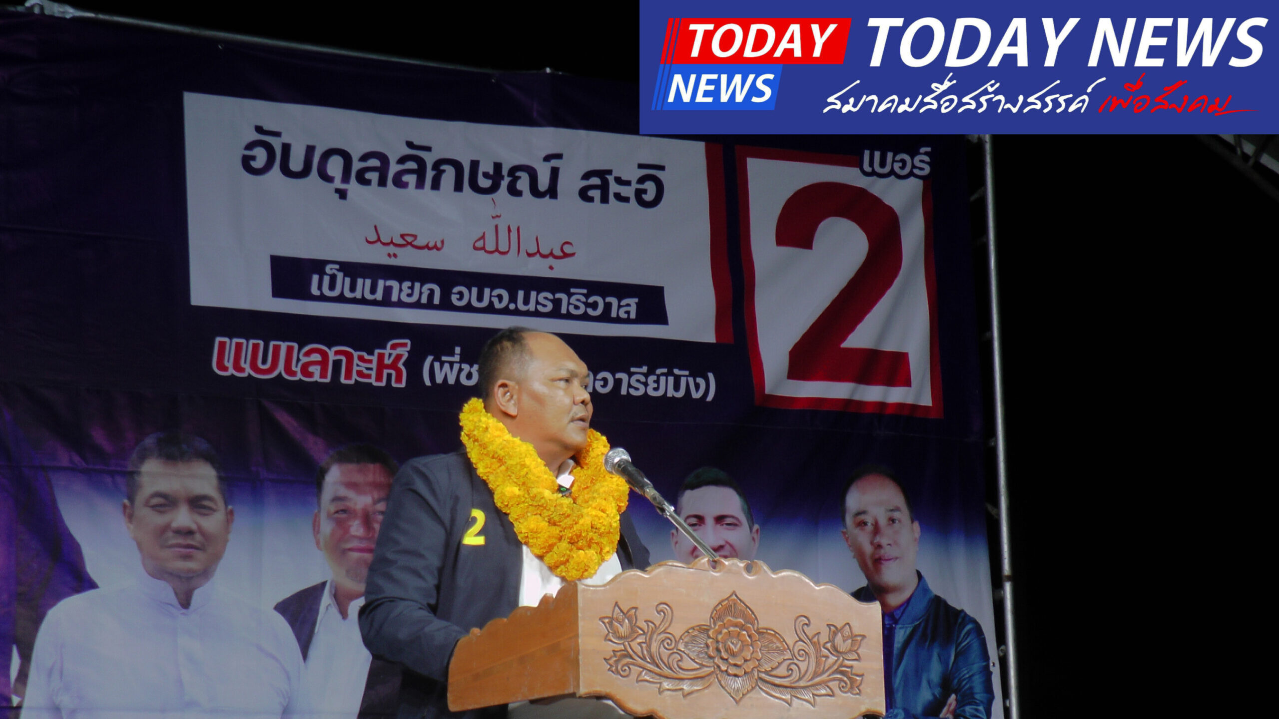 เมื่อเวลา 21.00 น. ของคืนวันที่ 15 ม.ค.68 ที่ผ่านมา นายอับดุลลักษณ์ สะอิ หรือ แบเลาะ ผู้สมัครชิงเก้าอี้นายก อบจ.นราธิวาส ซึ่งเป็นคู่แข่ง 1 เดียวของนายกูเซ็ง ยาวอหะซัน อดีตนายก อบจ.5 สมัย ได้เปิดเวทีปราศรัยในช่วงใกล้โค้งสุดท้ายที่สนามกีฬาเทศบาลตำบลรือเสาะ อ.รือเสาะ จ.นราธิวาส ตามคำเรียกร้องของคลื่นมหาชน ที่ได้รับชมการถ่ายทอดสดผ่านโซเซียลบนเวทีปราศรัยในพื้นที่ อ.ระแงะ เมื่อ 2 วันที่ผ่านมา เพื่อคลื่นมหาชนที่เดินทางจาก อ.ศรีสาครและรือเสาะ จำนวนกว่า 6,000 คน จะได้ตัดสินใจว่าระหว่างนายกูเซ็ง กับนายอับดุลลักษณ์ หรือ แบเลาะ ใครคู่ควรที่ประชาชนจะตัดสินใจให้นั่งเก้าอี้นายก อบจ.นราธิวาส ในอีก 5 วันข้างหน้านี้